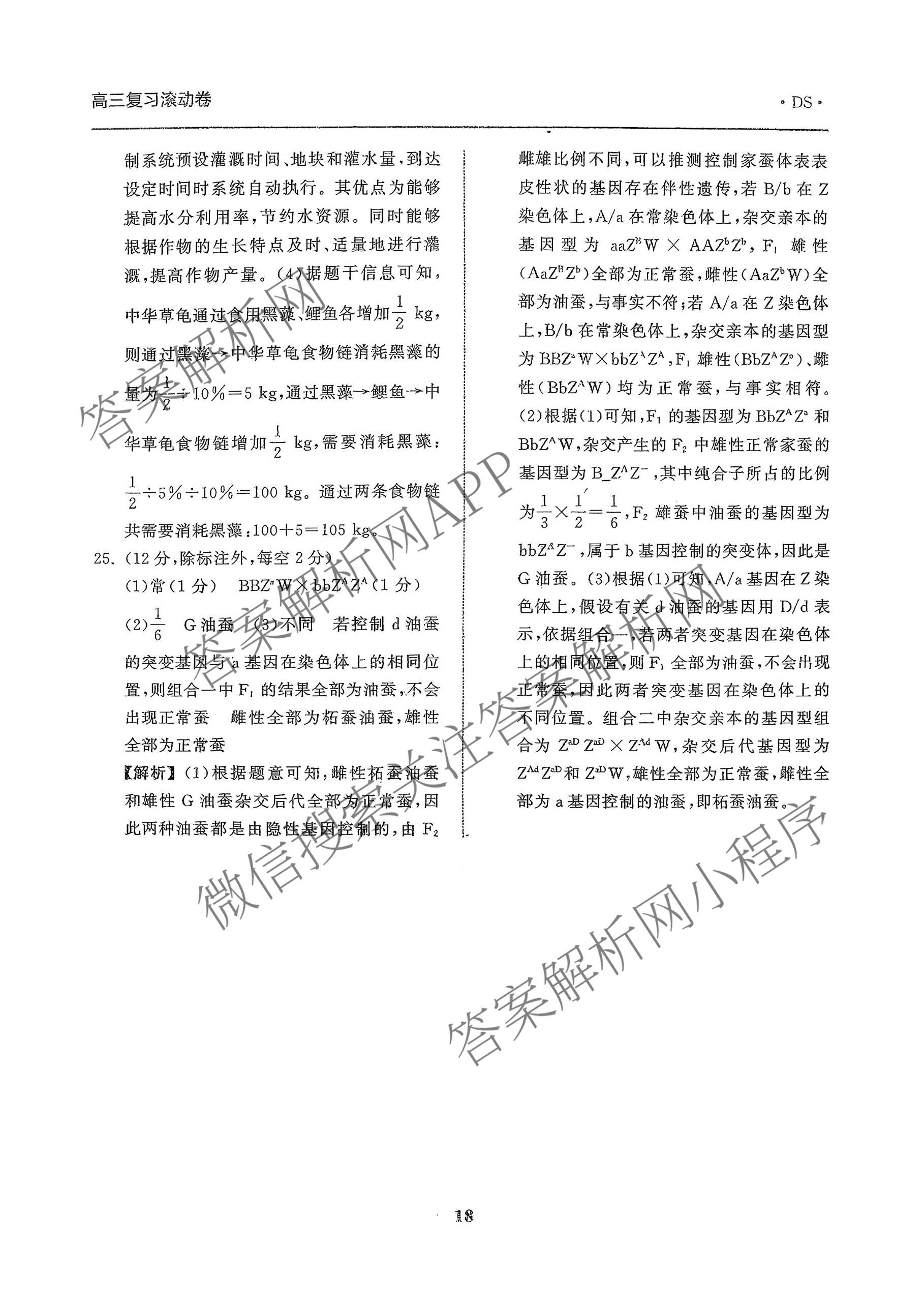 - 2025-2026[高三](衡中同卷)·学年度复习滚动卷(三)3生物(DS)答案