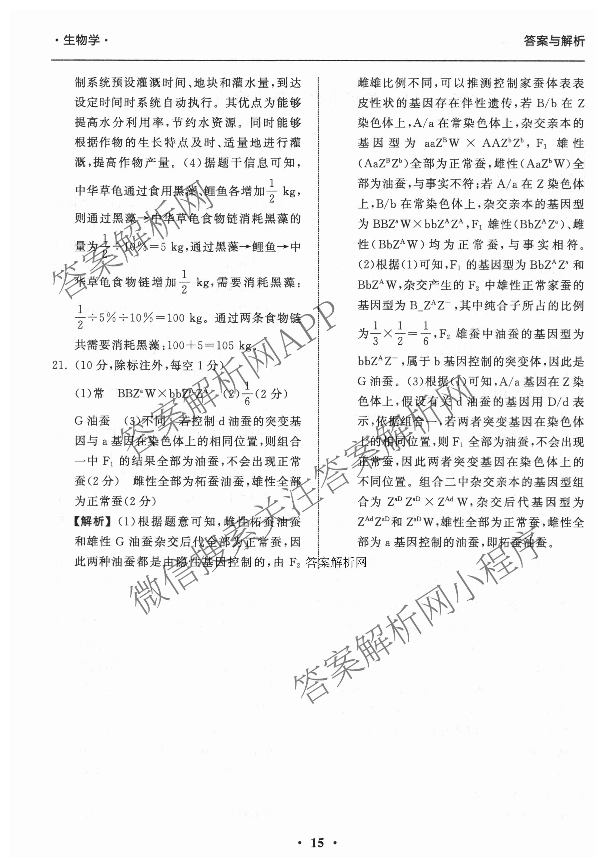 - 2025-2026(衡中同卷)·学年度[高三]复习滚动卷(三)3生物答案
