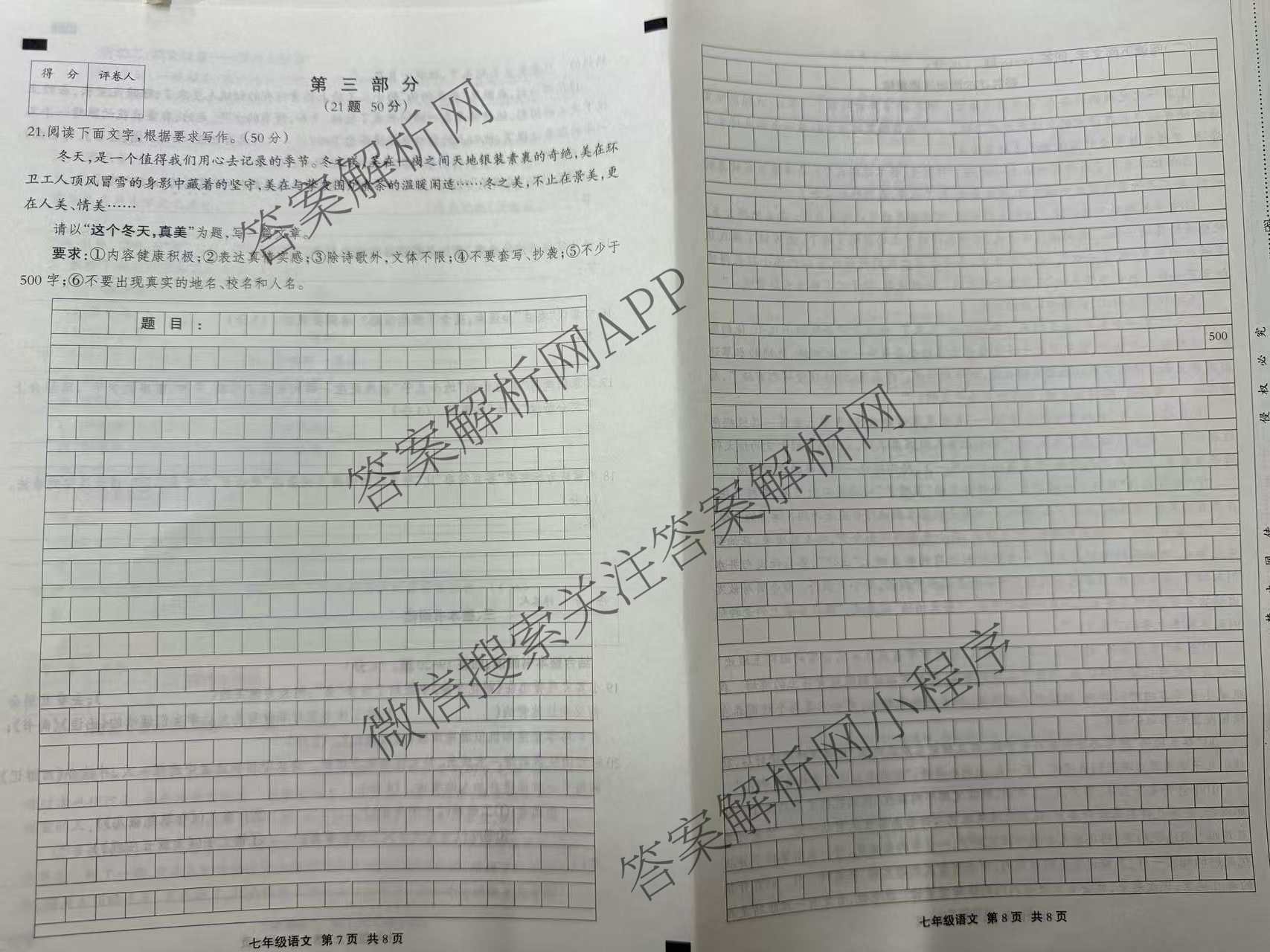 - 思博河北省2025~2026学年(七年级)第一学期期末教学质量检测(C卷)语文答案