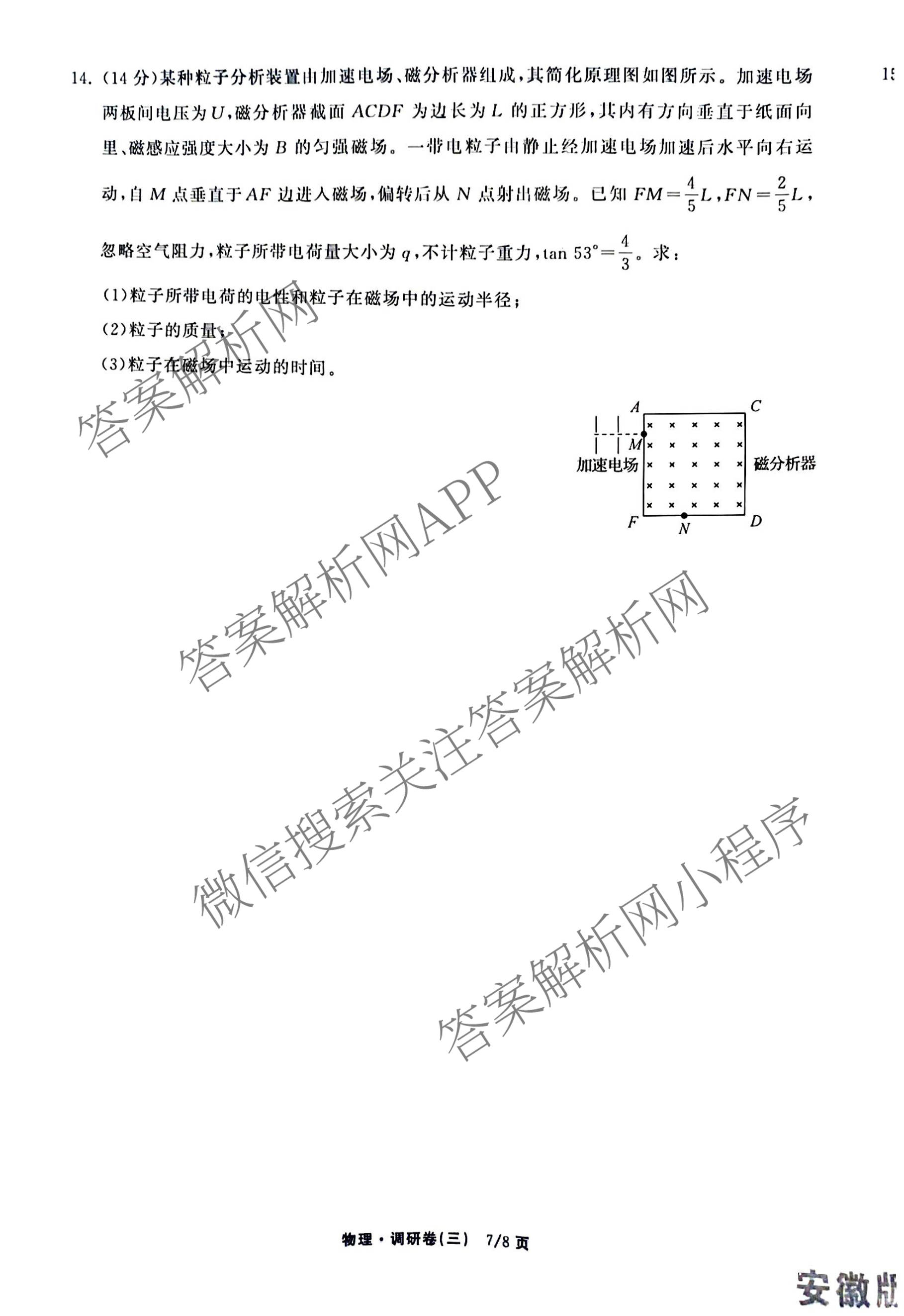 - [高三]天舟高考衡中同卷2026年普通高中学业水平选择性考试模拟调研卷(三)3物理(安徽版)答案