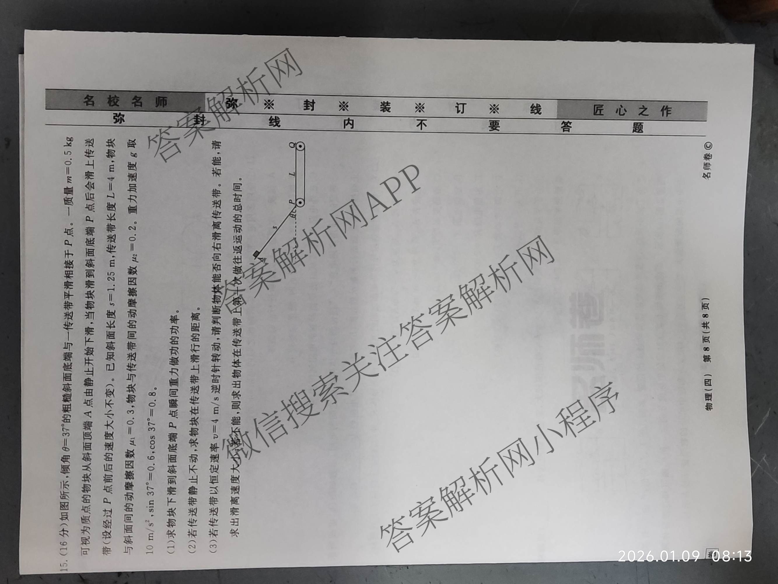- [高三]衡水名师卷高考模拟调研卷 2026年普通高中学业水平选择性考试模拟(四)4物理(※)答案