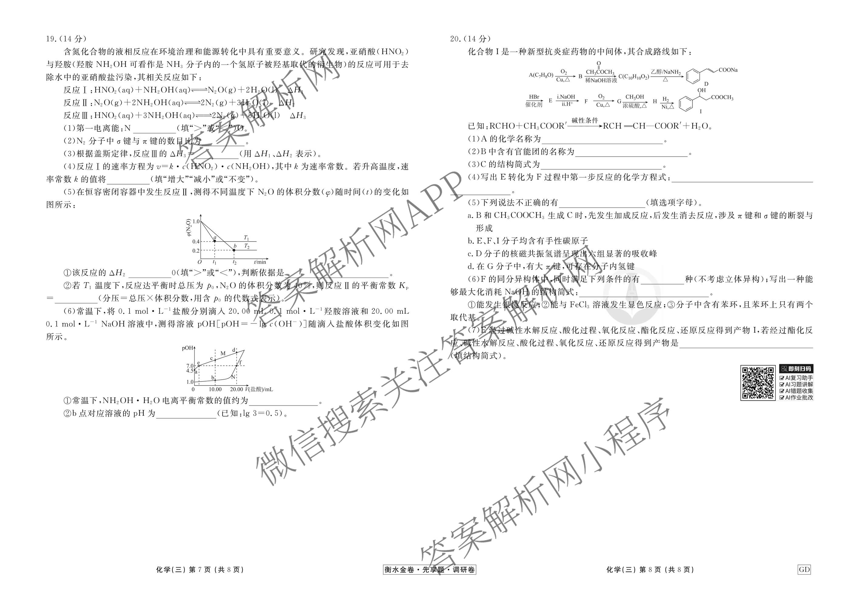 - [高三]衡水金卷先享题调研卷2026年普通高中学业水平选择性考试模拟试题(三)3化学(AH)试题
