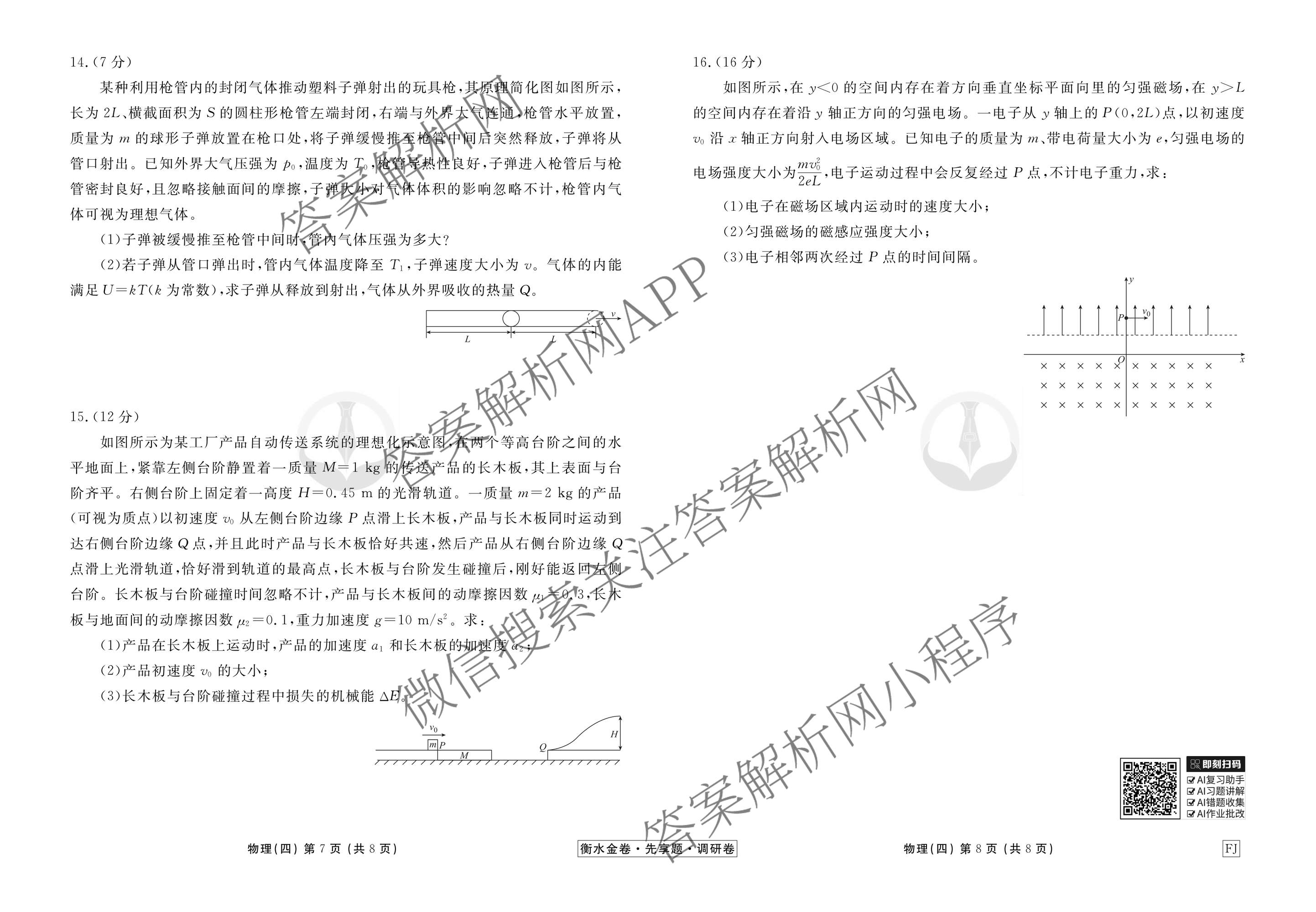 衡水金卷先享题·调研卷·2026年普通高中学业水平选择性考试模拟试题(四)4物理(FJ)试题,目前衡水金卷先享题答案网已经汇总了衡水金卷先享题·调研卷·2026年普通高中学业水平选择性考试模拟试题(四)4物理(FJ)试题的各科答案和试卷,获取更多衡水金卷先享题答案解析,请在关注本站。