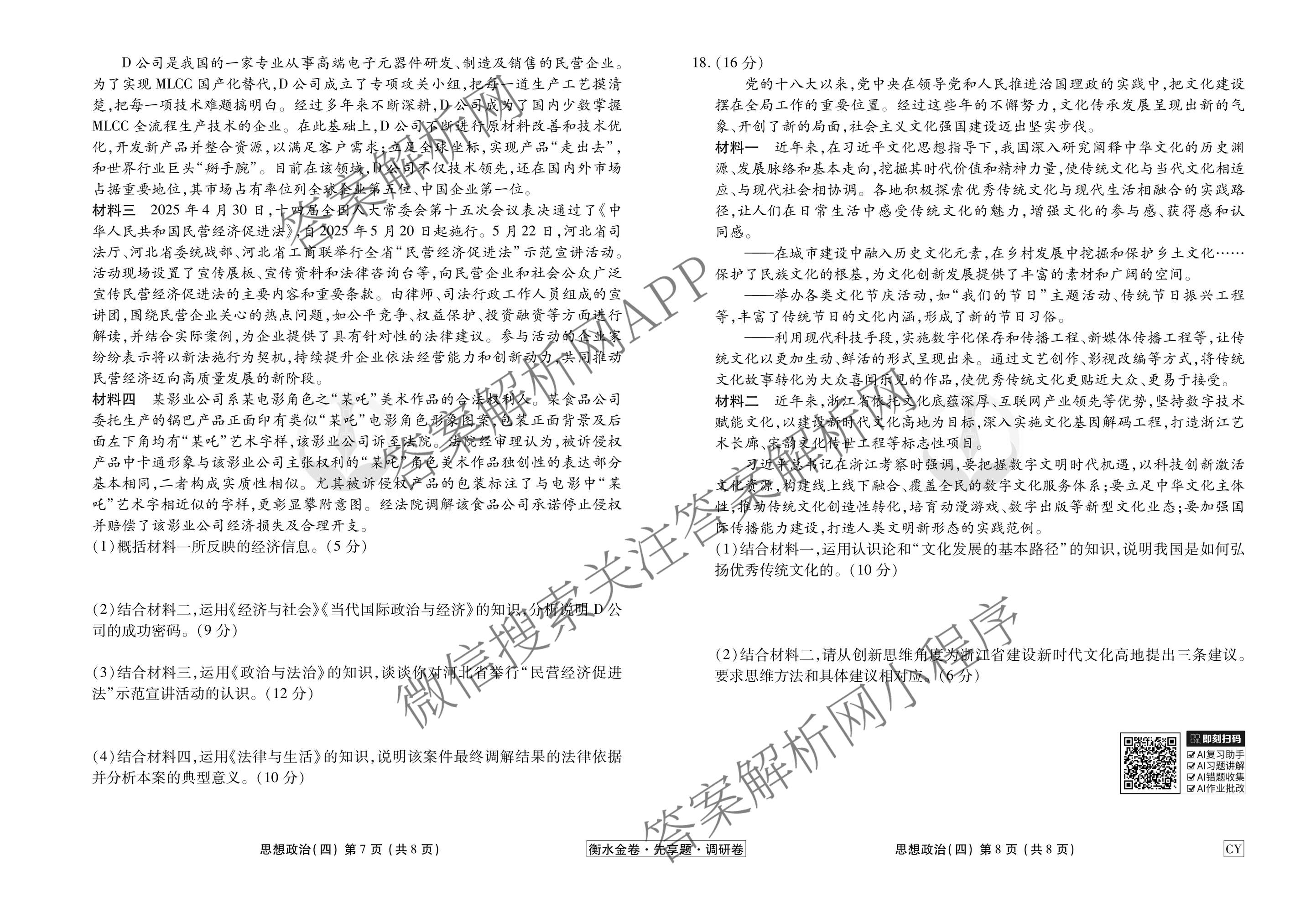 - (衡水金卷先享题)调研卷2026年普通高中学业水平选择性考试模拟试题(四)4政治(AH)答案