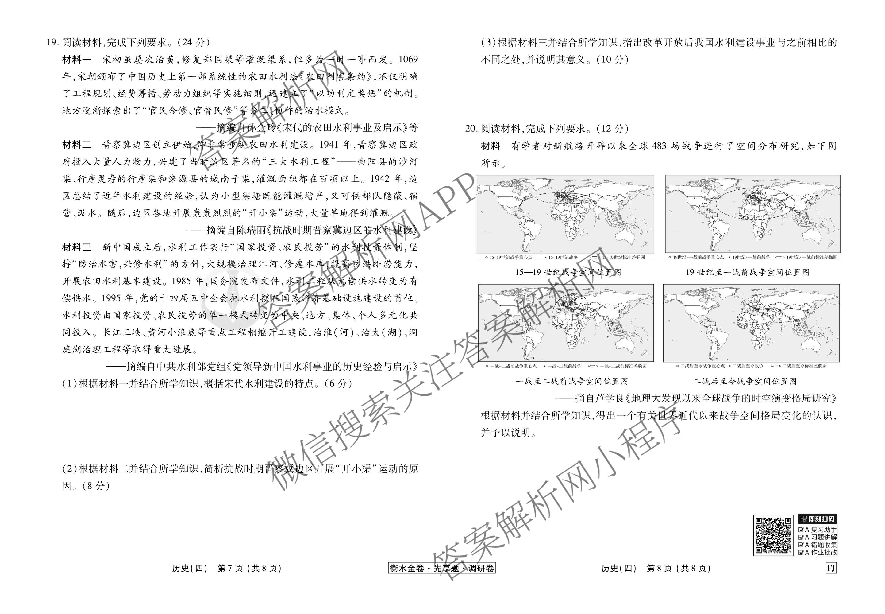 - [衡水金卷先享题]·调研卷·2026年普通高中学业水平选择性考试模拟试题(四)4历史(JS)答案