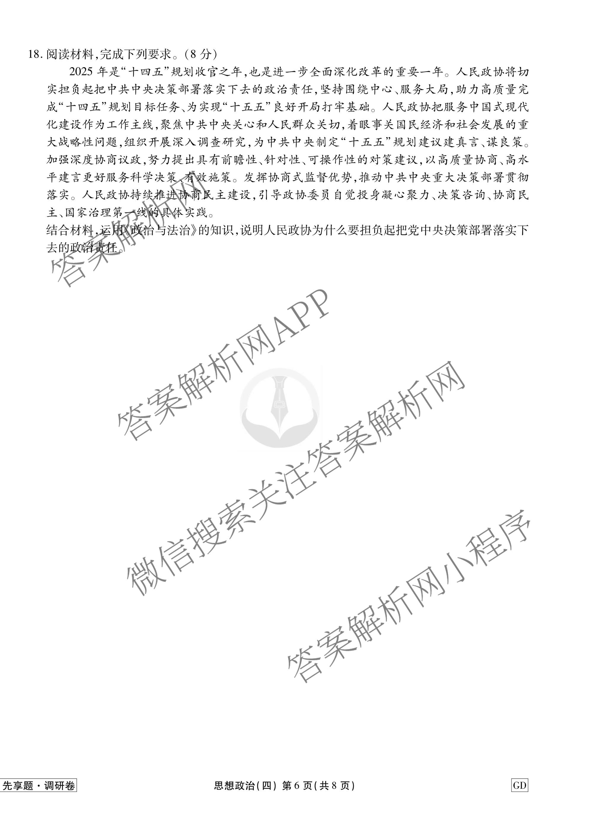 - [衡水金卷先享题]·调研卷·2026年普通高中学业水平选择性考试模拟试题(四)4政治(GD)答案