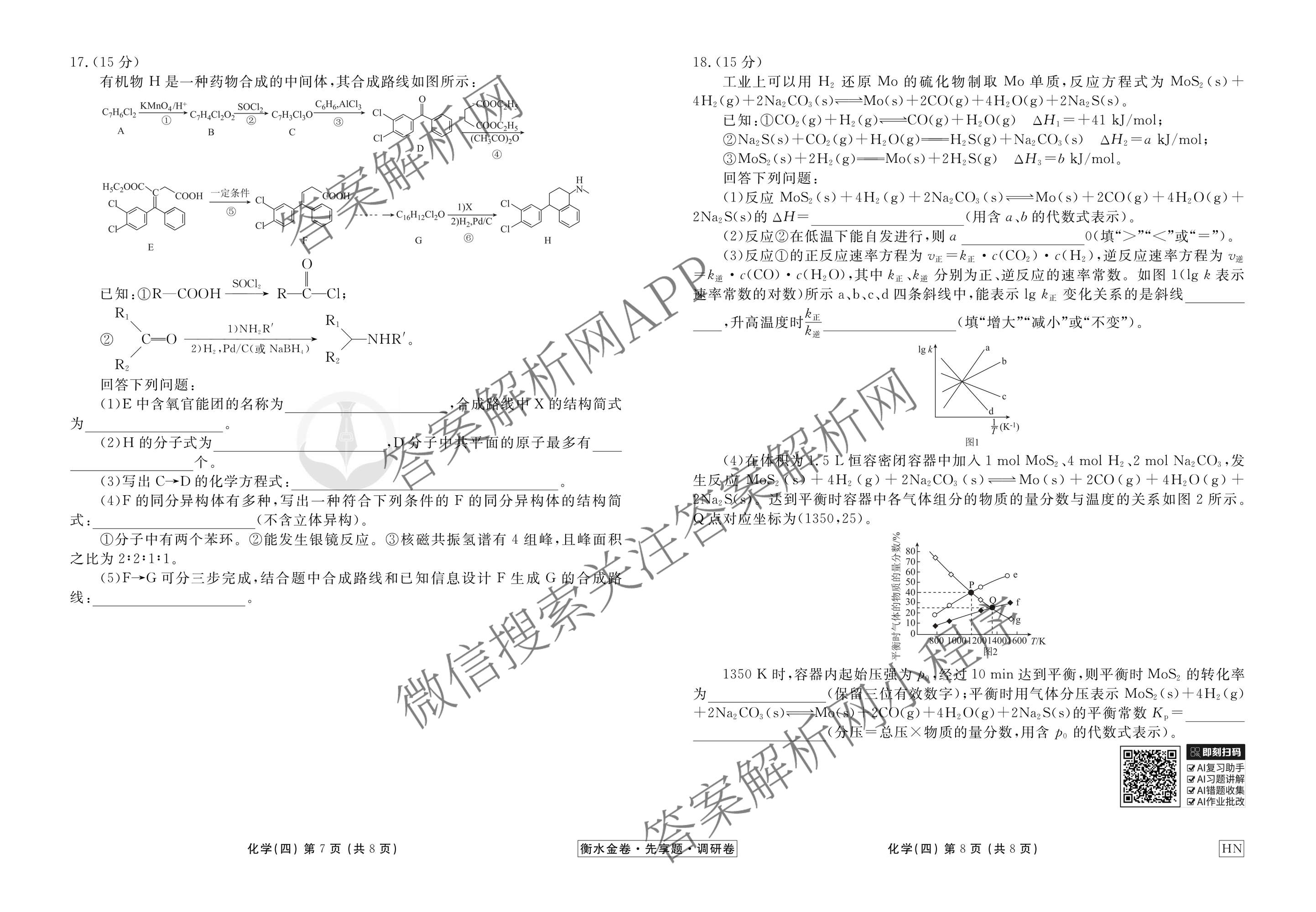 衡水金卷先享题·调研卷·2026年普通高中学业水平选择性考试模拟试题(四)4化学(HN)试题,目前衡水金卷先享题答案网已经汇总了衡水金卷先享题·调研卷·2026年普通高中学业水平选择性考试模拟试题(四)4化学(HN)试题的各科答案和试卷,获取更多衡水金卷先享题答案解析,请在关注本站。