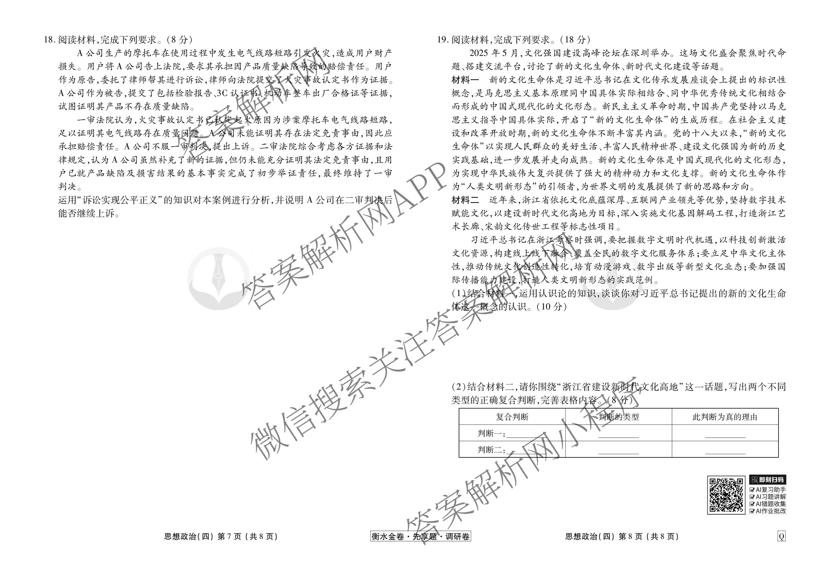 衡水金卷先享题·调研卷·2026年普通高中学业水平选择性考试模拟(四)4政治(Q)试题,目前衡水金卷先享题答案网已经汇总了衡水金卷先享题·调研卷·2026年普通高中学业水平选择性考试模拟(四)4政治(Q)试题的各科答案和试卷,获取更多衡水金卷先享题答案解析,请在关注本站。