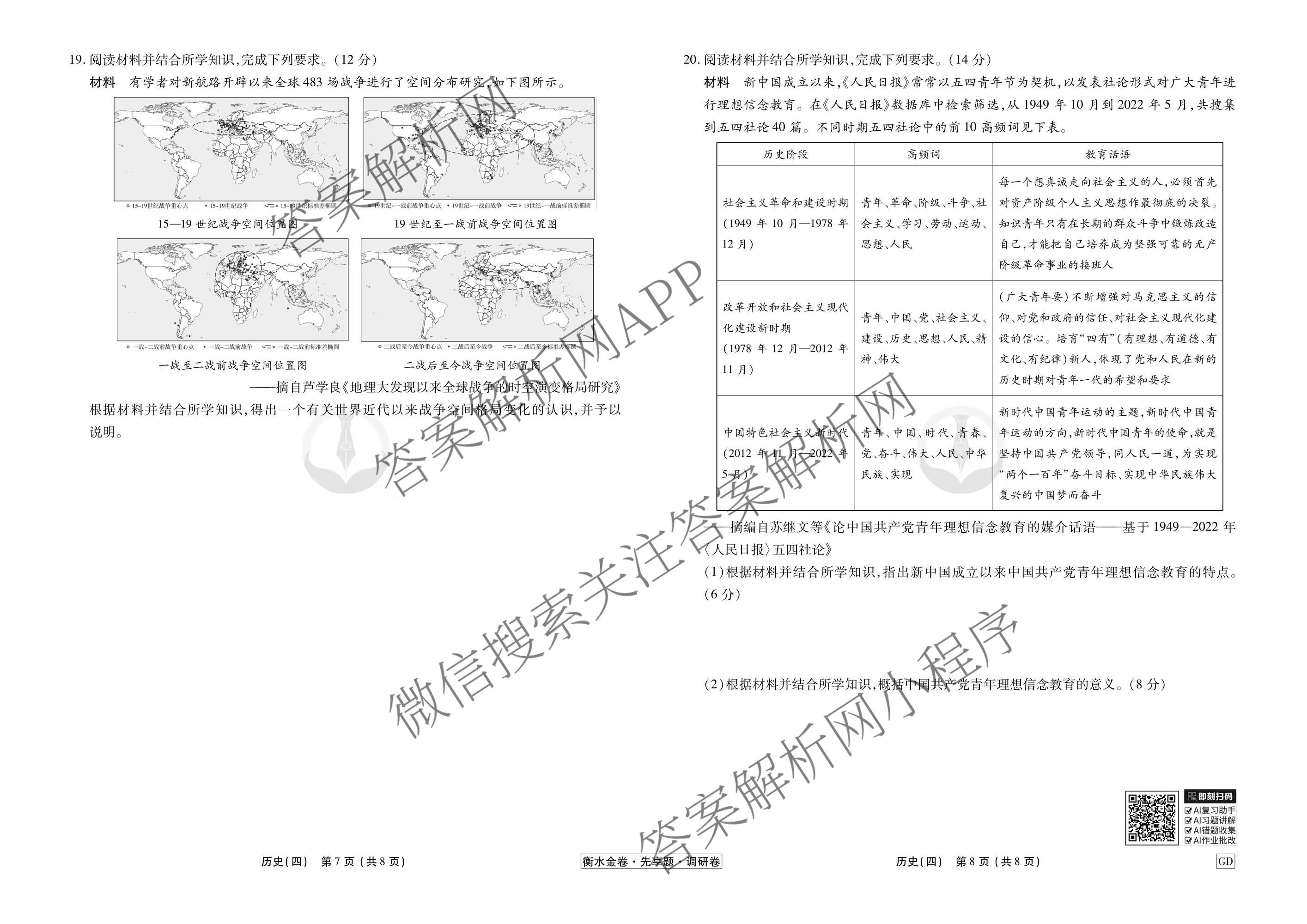 - [衡水金卷先享题]调研卷2026年普通高中学业水平选择性考试模拟试题(四)4历史(GD)答案