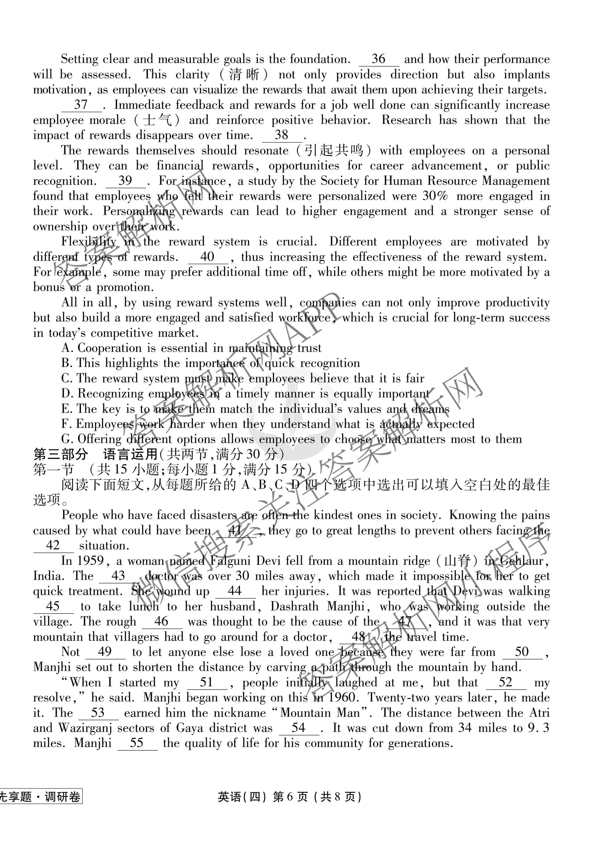 - (衡水金卷先享题)·调研卷·2026年普通高等学校招生全国统一考试模拟(四)4英语(不含听力)答案