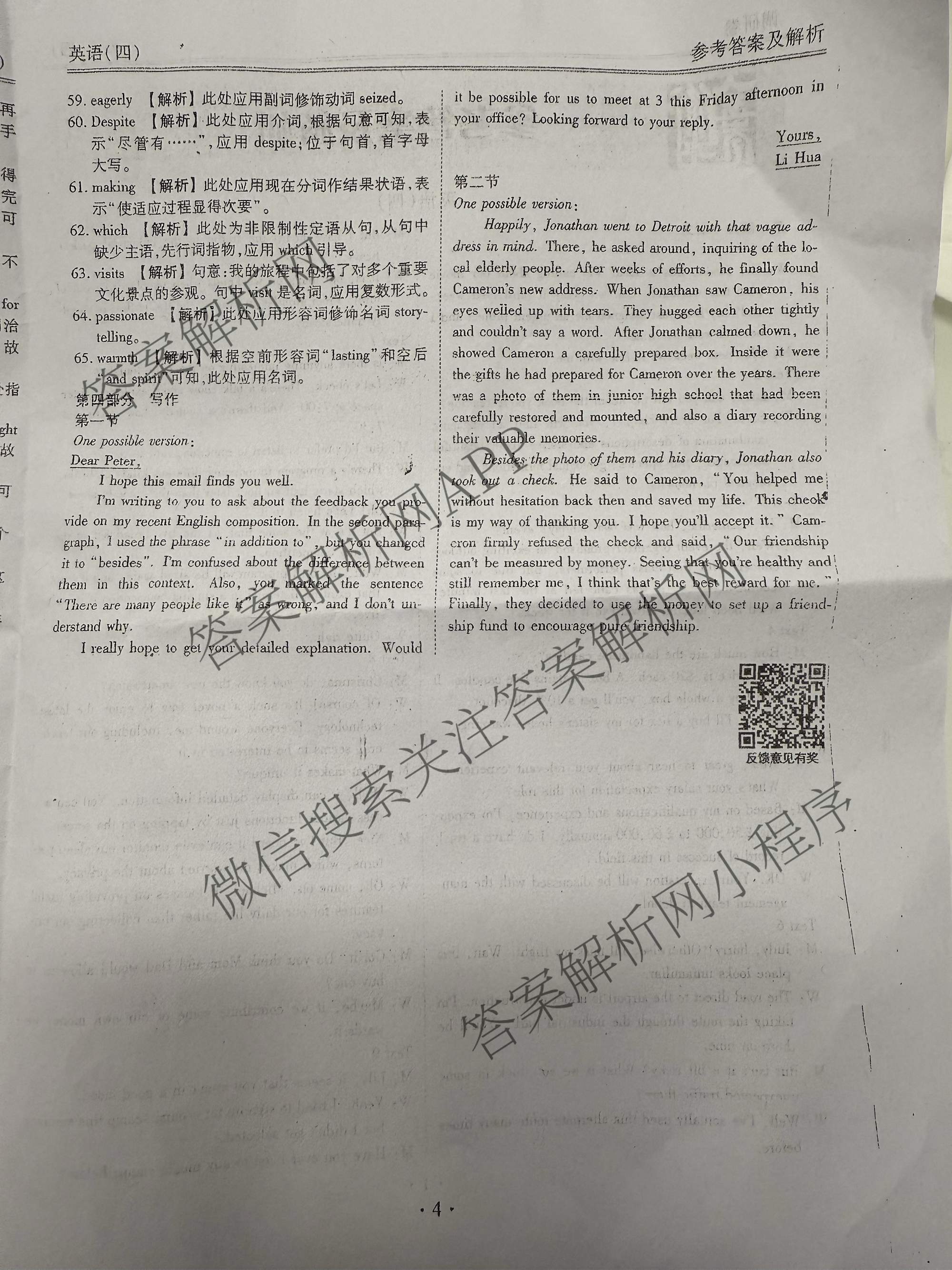 - (高三)(衡水金卷先享题)·调研卷·2026年普通高中学业水平选择性考试模拟(四)4英语(无字母)答案