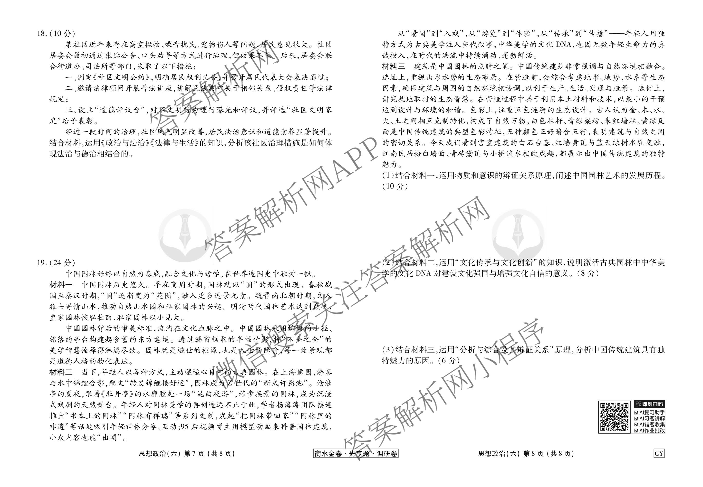 衡水金卷先享题·调研卷·2026年普通高中学业水平选择性考试模拟试题(六)6政治(CY)试题,目前衡水金卷先享题答案网已经汇总了衡水金卷先享题·调研卷·2026年普通高中学业水平选择性考试模拟试题(六)6政治(CY)试题的各科答案和试卷,获取更多衡水金卷先享题答案解析,请在关注本站。