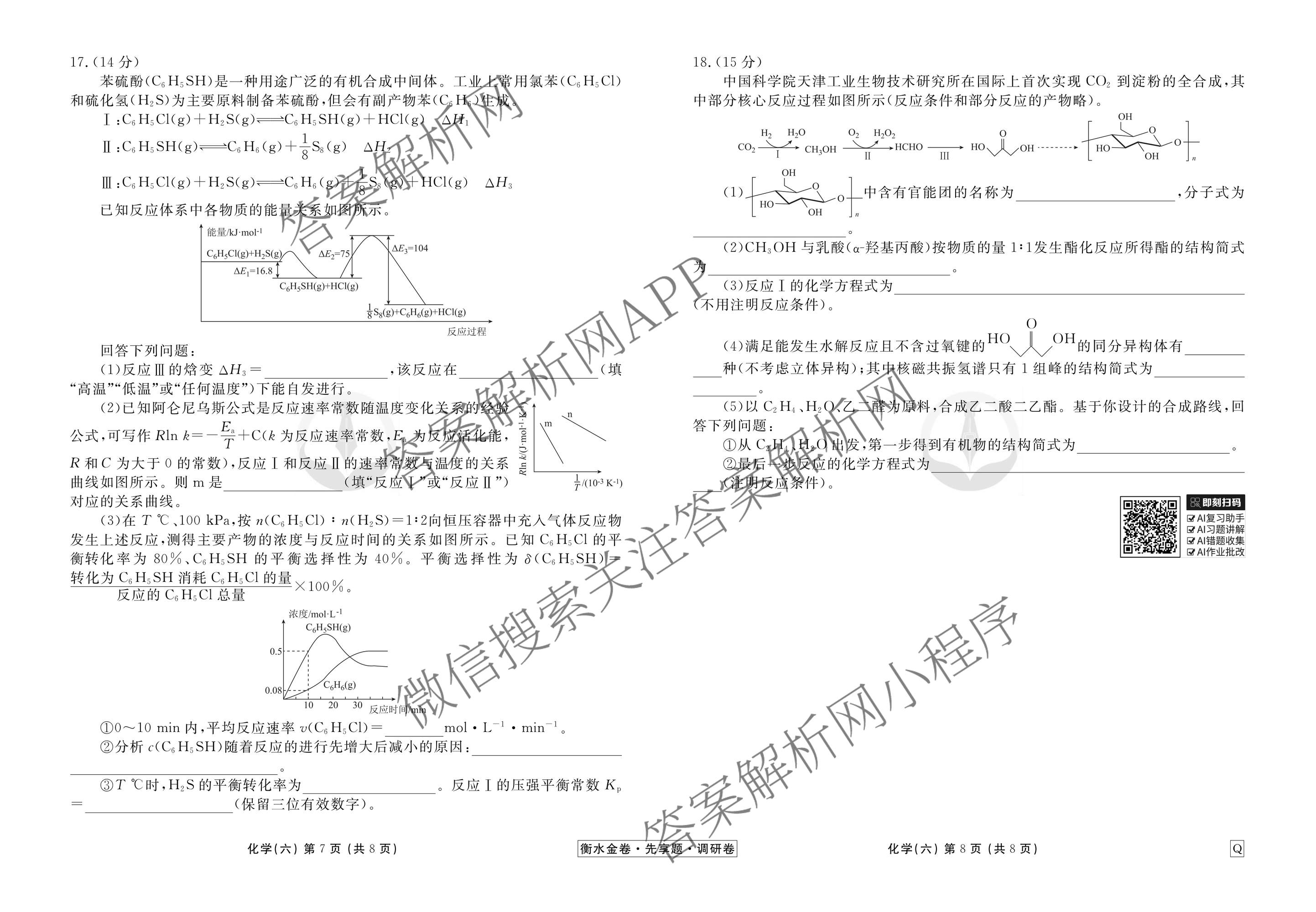 - (高三)衡水金卷先享题调研卷2026年普通高中学业水平选择性考试模拟试题(六)6化学(GS)答案