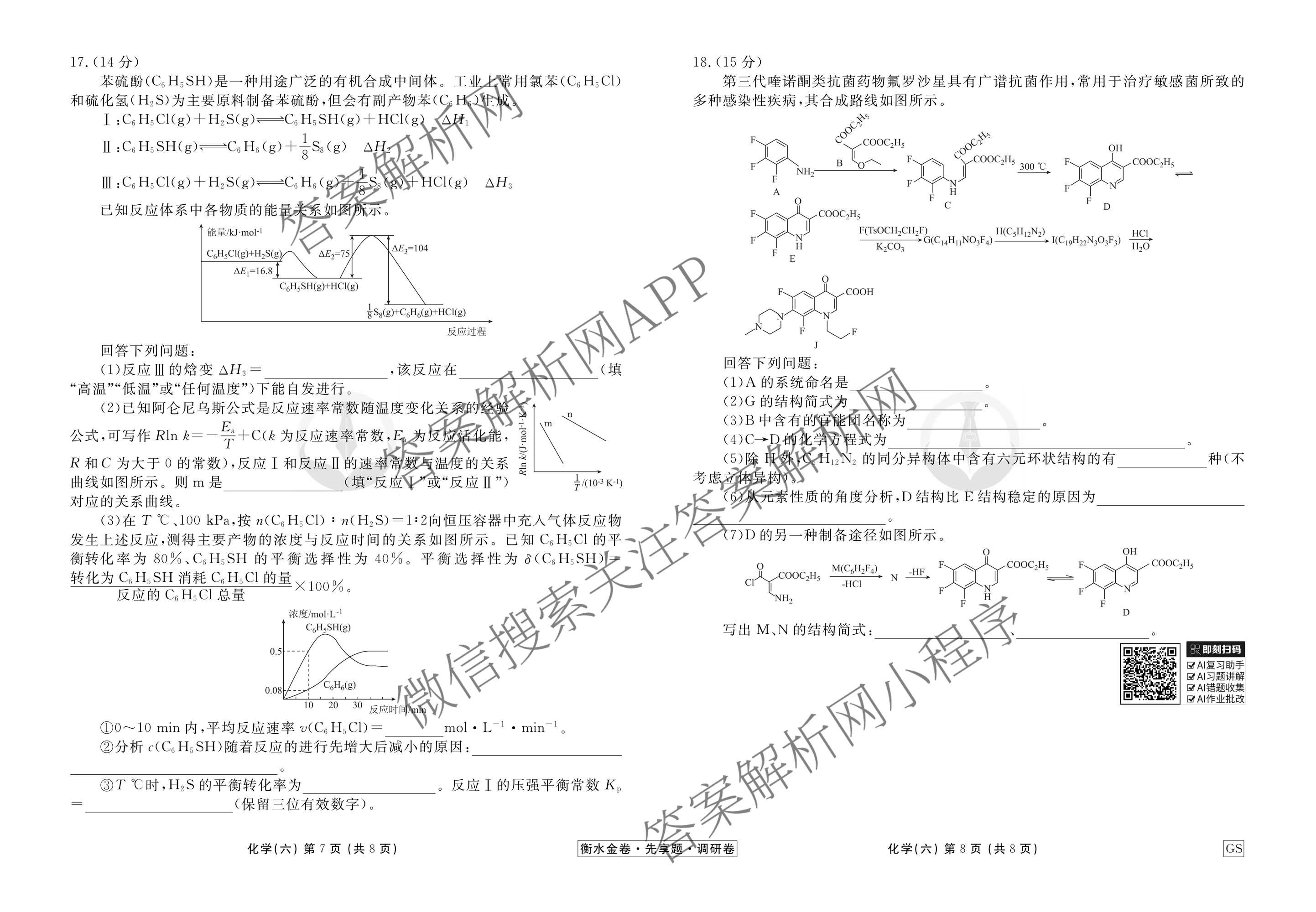 - (高三)衡水金卷先享题调研卷2026年普通高中学业水平选择性考试模拟试题(六)6化学(GS)答案