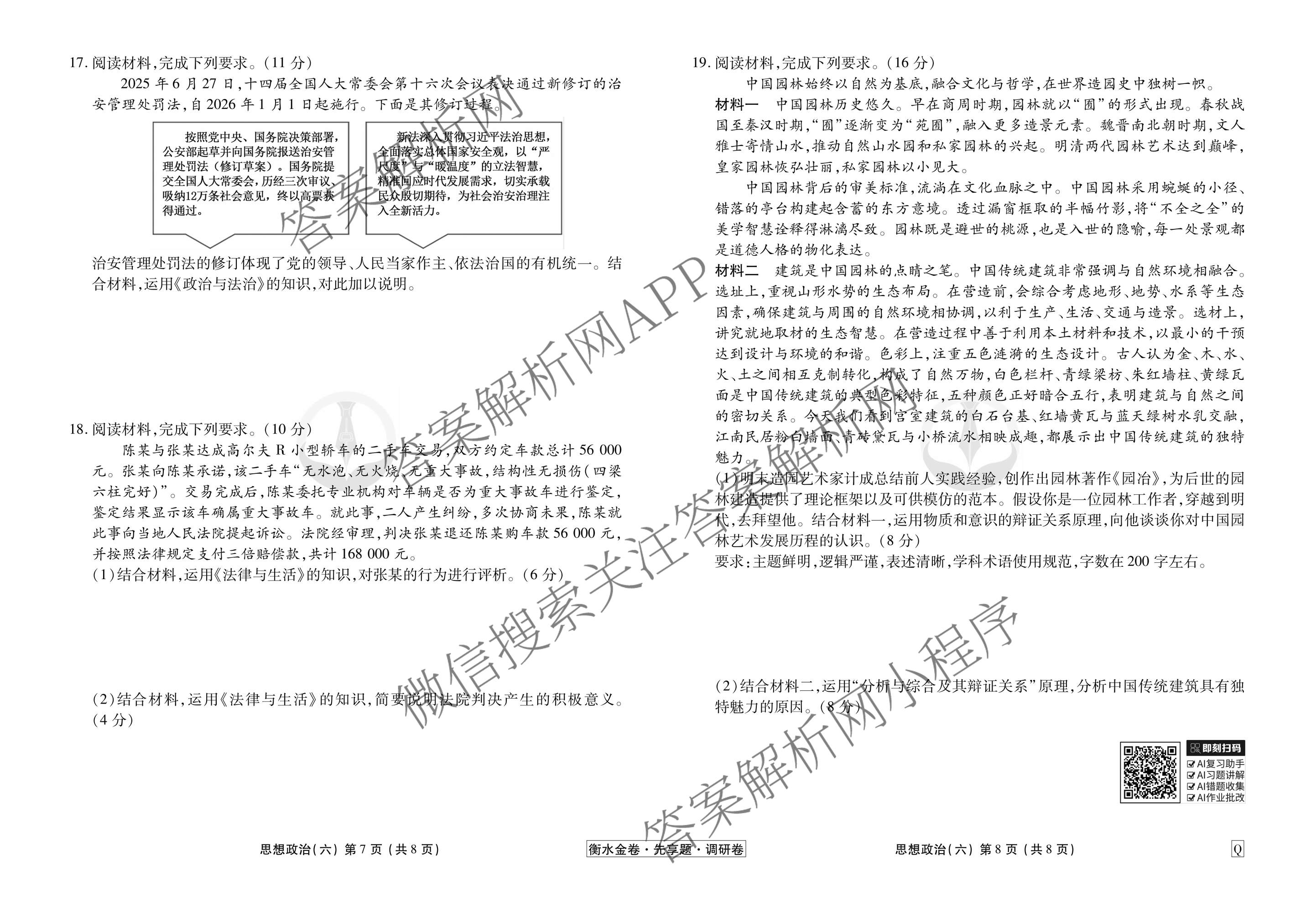- (高三)衡水金卷先享题调研卷2026年普通高中学业水平选择性考试模拟试题(六)6政治(GD)试题