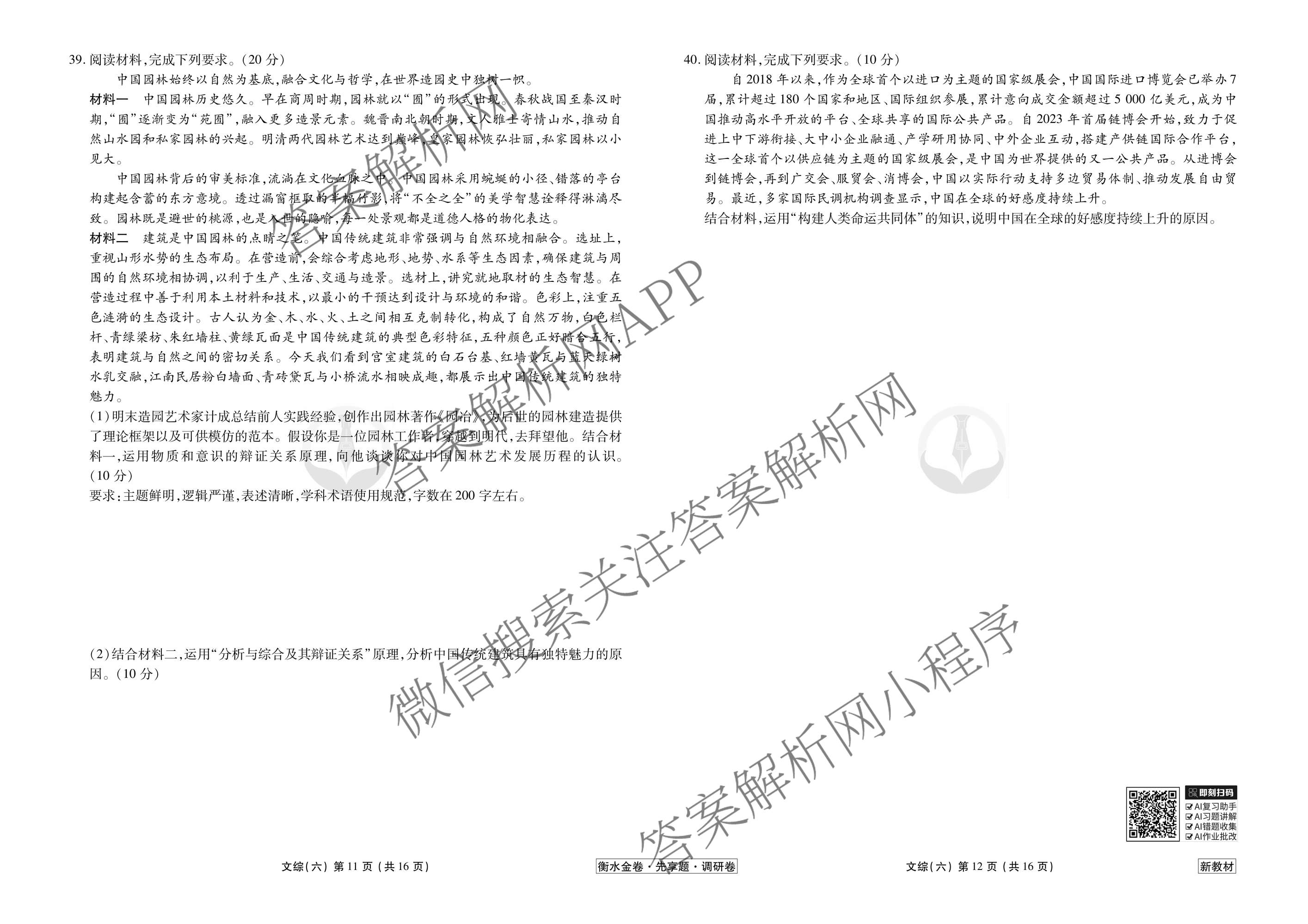 衡水金卷先享题·调研卷·2026年普通高等学校招生全国统一考试模拟(六)6文综(新教材)试题,目前衡水金卷先享题答案网已经汇总了衡水金卷先享题·调研卷·2026年普通高等学校招生全国统一考试模拟(六)6文综(新教材)试题的各科答案和试卷,获取更多衡水金卷先享题答案解析,请在关注本站。