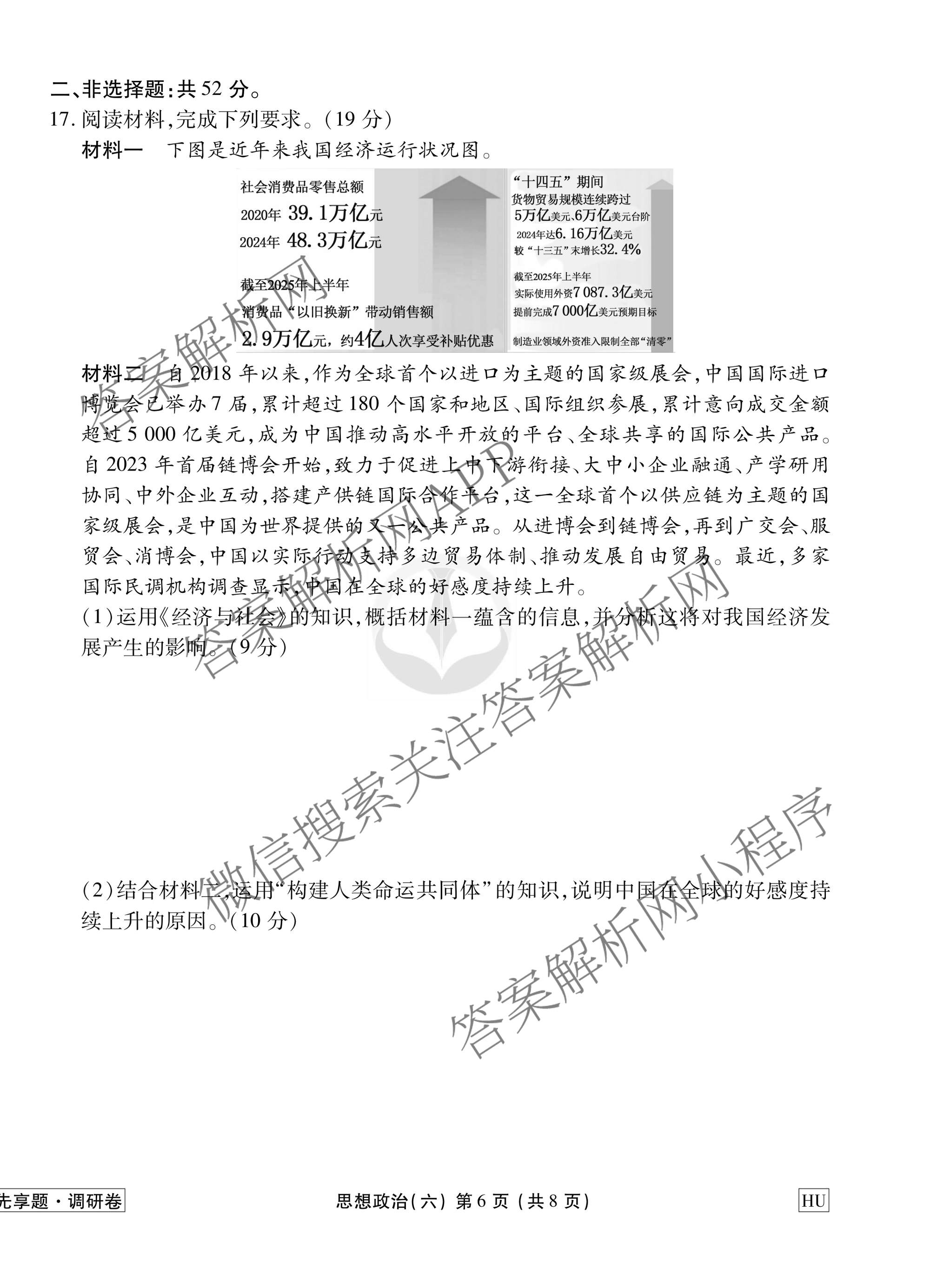 (高三)衡水金卷先享题调研卷2026年普通高中学业水平选择性考试模拟试题(六)6政治(HU)试题