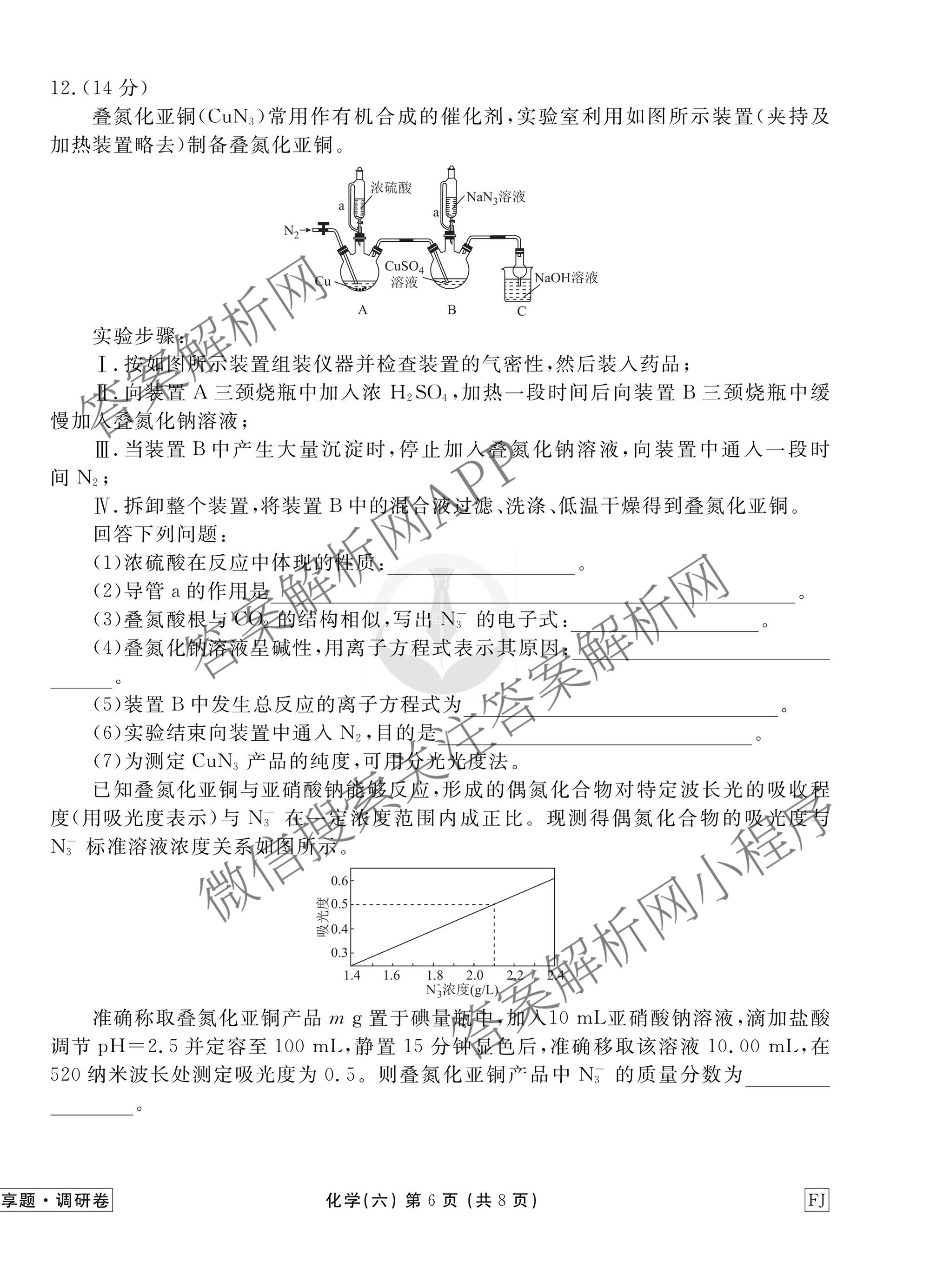 - [高三]衡水金卷先享题调研卷2026年普通高中学业水平选择性考试模拟(六)6化学(WG)试题