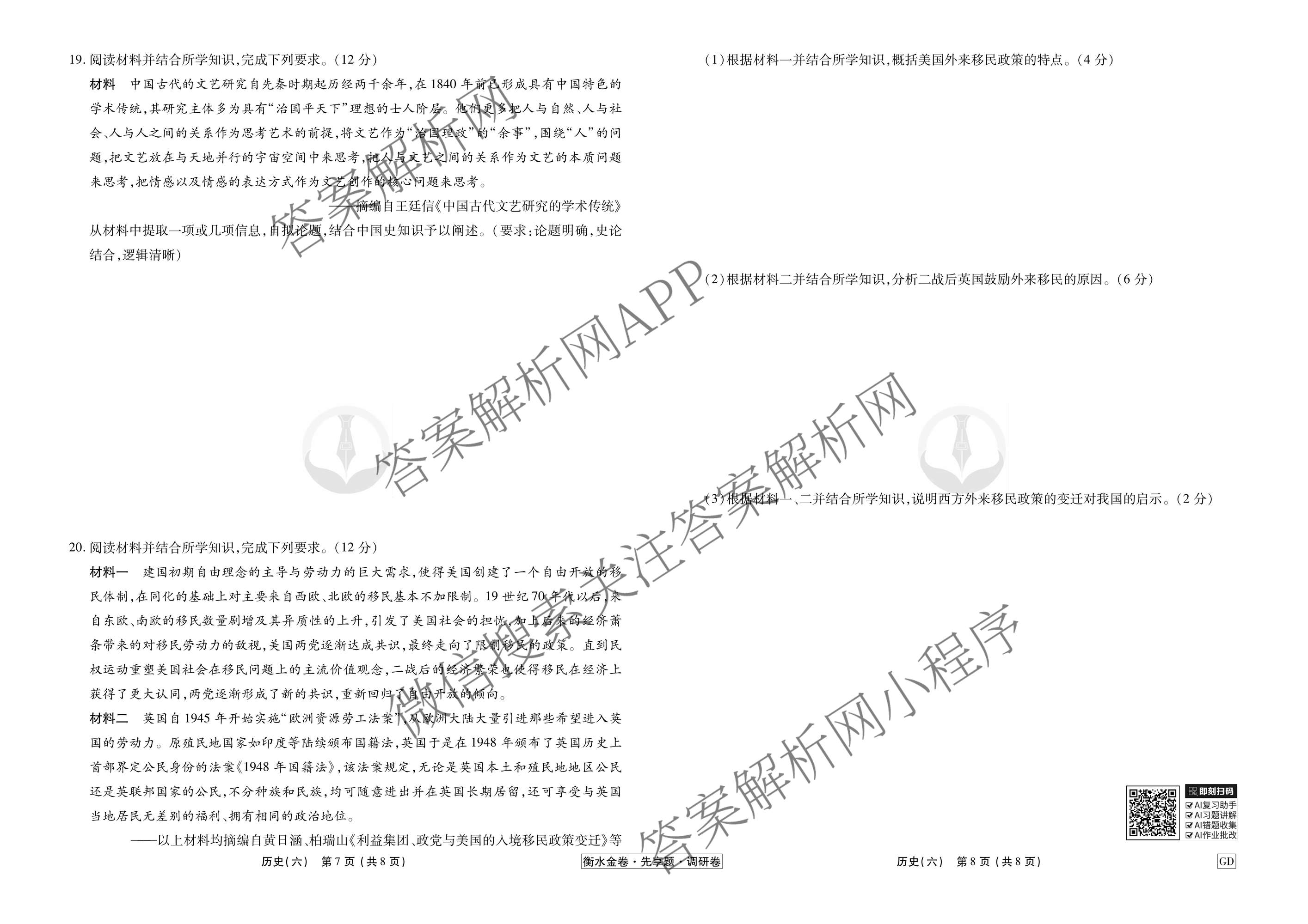 - [衡水金卷先享题]调研卷2026年普通高中学业水平选择性考试模拟试题(六)6历史(GD)试题