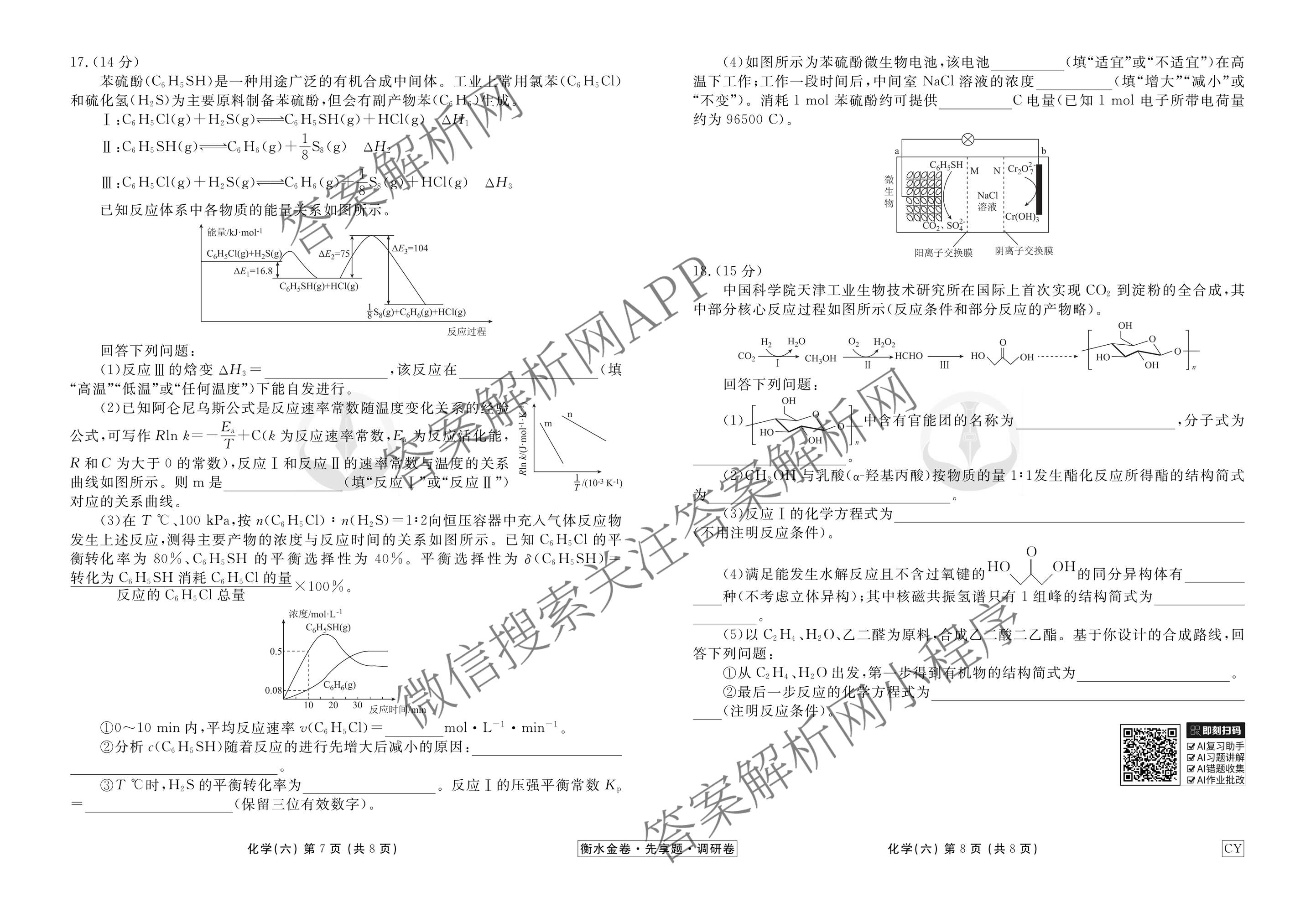 - (高三)衡水金卷先享题调研卷2026年普通高中学业水平选择性考试模拟试题(六)6化学(GS)答案