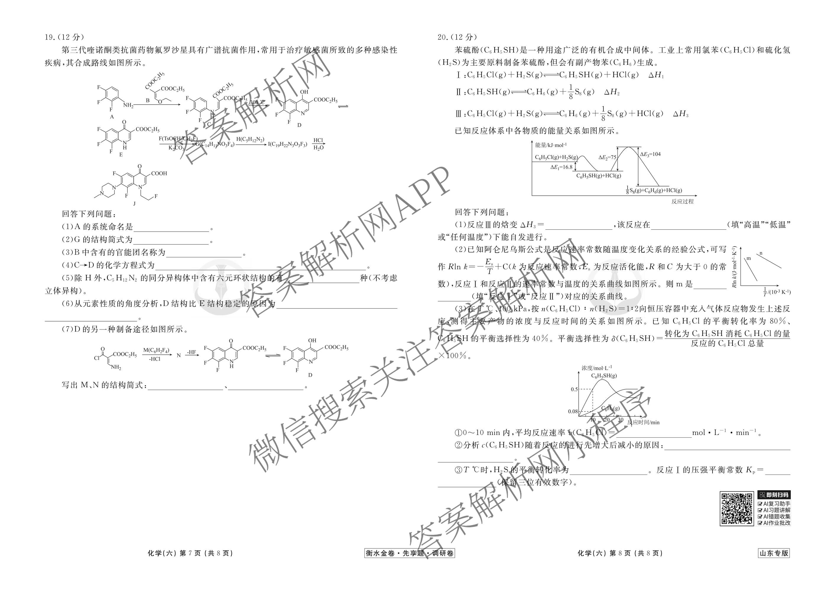 - [衡水金卷先享题]调研卷2026年普通高中学业水平等级考试模拟试题(六)6化学(山东专版)答案