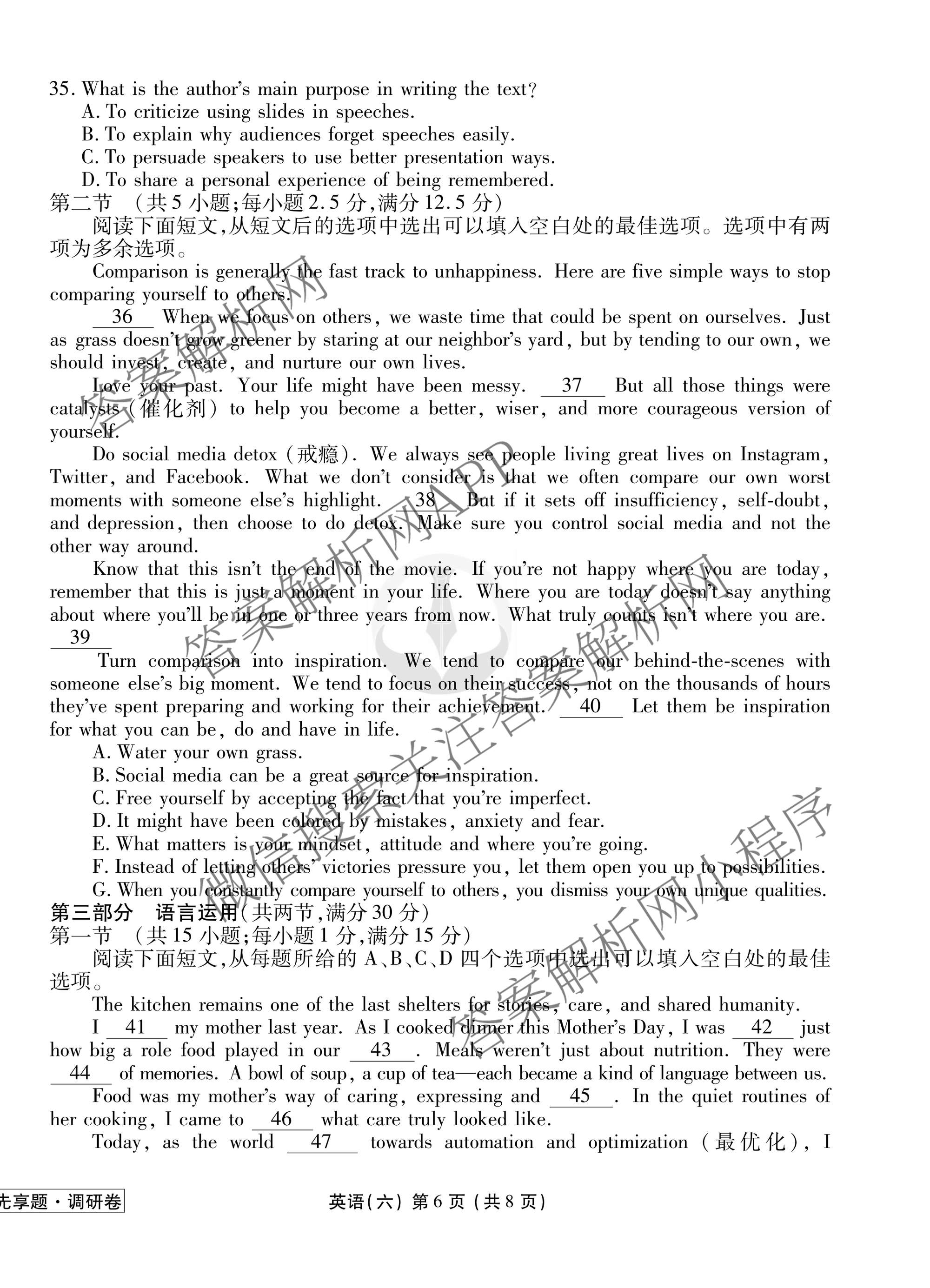 - 衡水金卷先享题调研卷2026年普通高等学校招生全国统一考试模拟(六)6英语(不含听力)试题