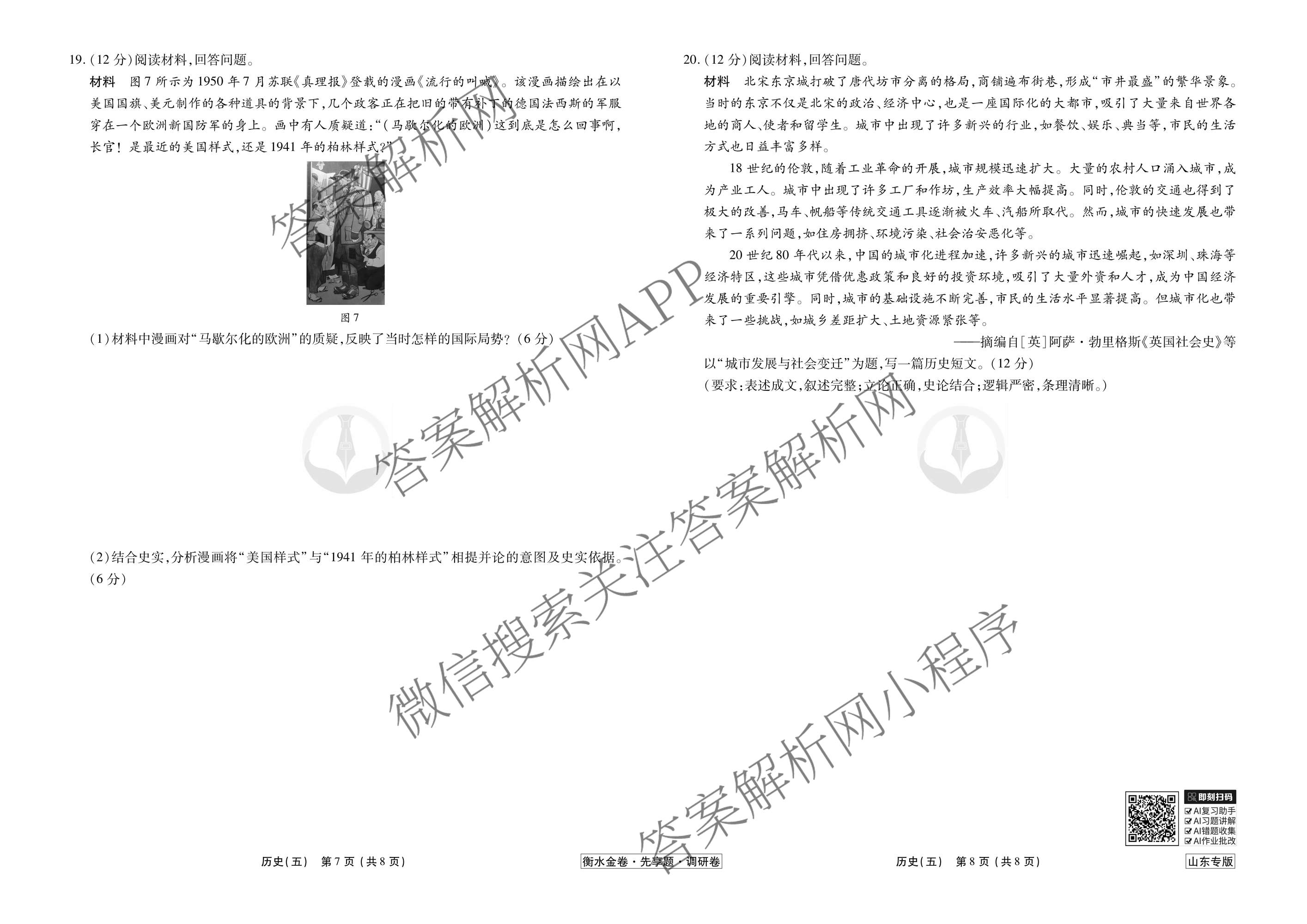 - [高三](衡水金卷先享题)调研卷2026年普通高中学业水平等级考试模拟试题(五)5历史(山东专版)答案