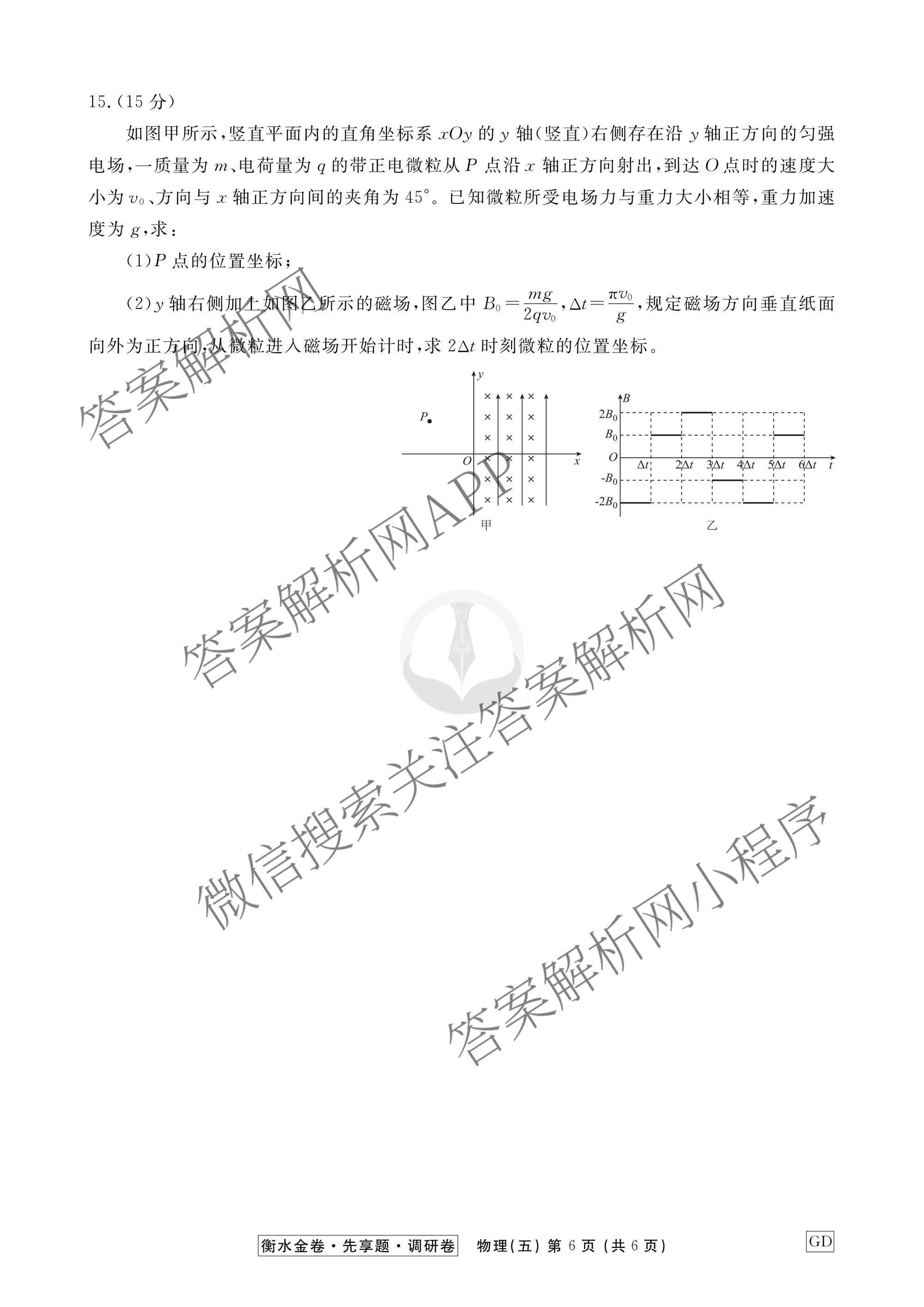 衡水金卷先享题·调研卷·2026年普通高中学业水平选择性考试模拟试题(五)5物理(GD)试题,目前衡水金卷先享题答案网已经汇总了衡水金卷先享题·调研卷·2026年普通高中学业水平选择性考试模拟试题(五)5物理(GD)试题的各科答案和试卷,获取更多衡水金卷先享题答案解析,请在关注本站。
