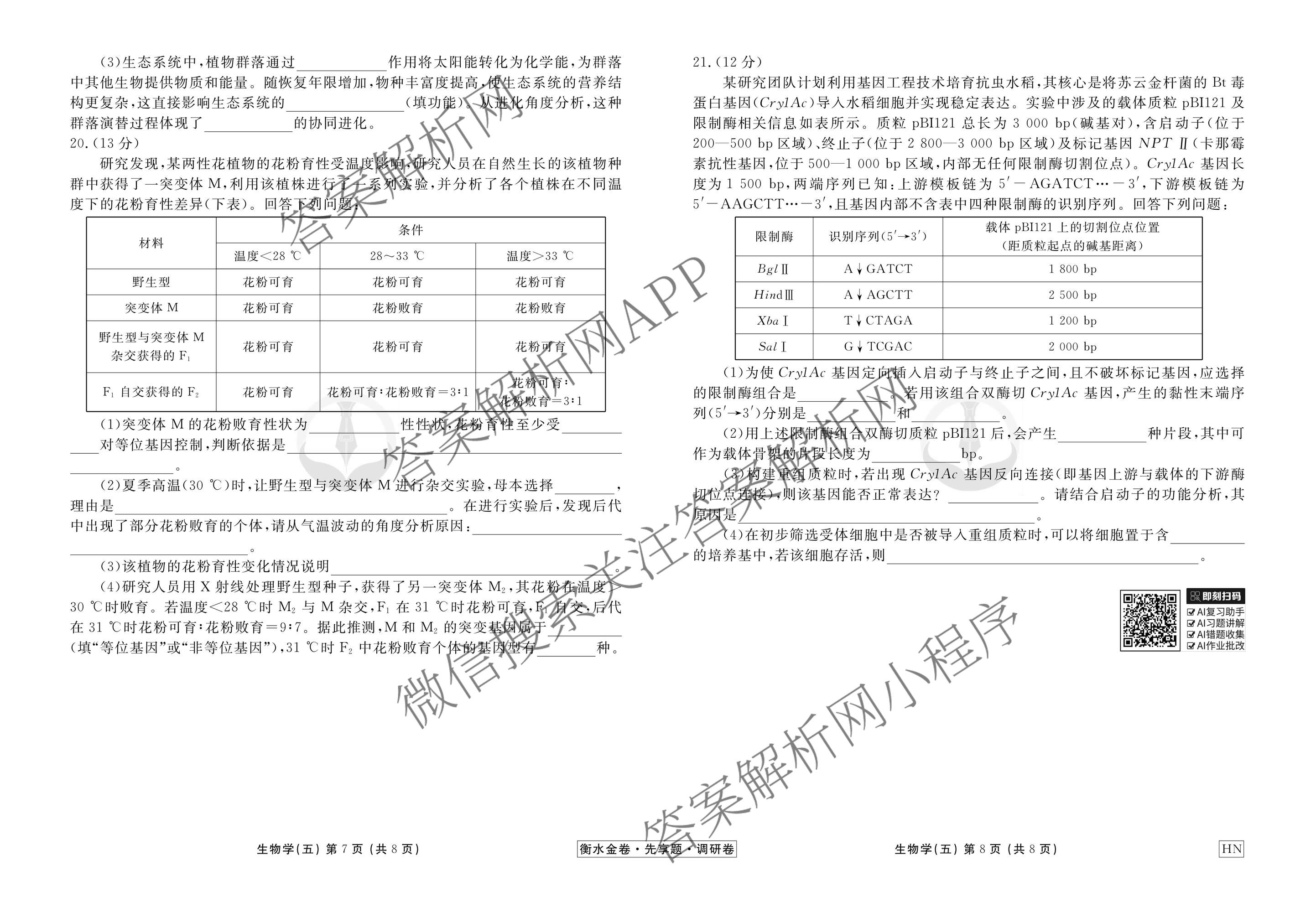 衡水金卷先享题·调研卷·2026年普通高中学业水平选择性考试模拟试题(五)5生物(HN)试题,目前衡水金卷先享题答案网已经汇总了衡水金卷先享题·调研卷·2026年普通高中学业水平选择性考试模拟试题(五)5生物(HN)试题的各科答案和试卷,获取更多衡水金卷先享题答案解析,请在关注本站。