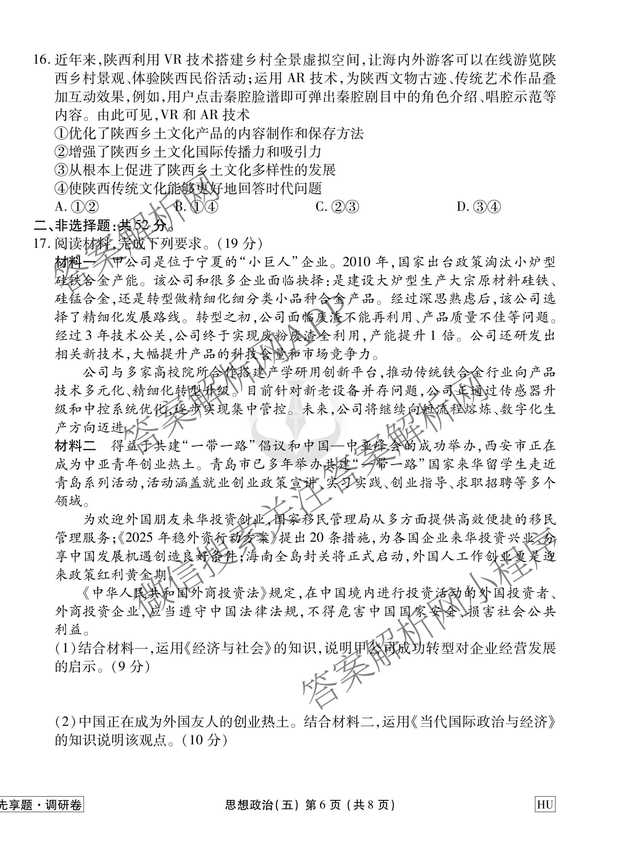 衡水金卷先享题·调研卷·2026年普通高中学业水平选择性考试模拟试题(五)5政治(HU)试题,目前衡水金卷先享题答案网已经汇总了衡水金卷先享题·调研卷·2026年普通高中学业水平选择性考试模拟试题(五)5政治(HU)试题的各科答案和试卷,获取更多衡水金卷先享题答案解析,请在关注本站。