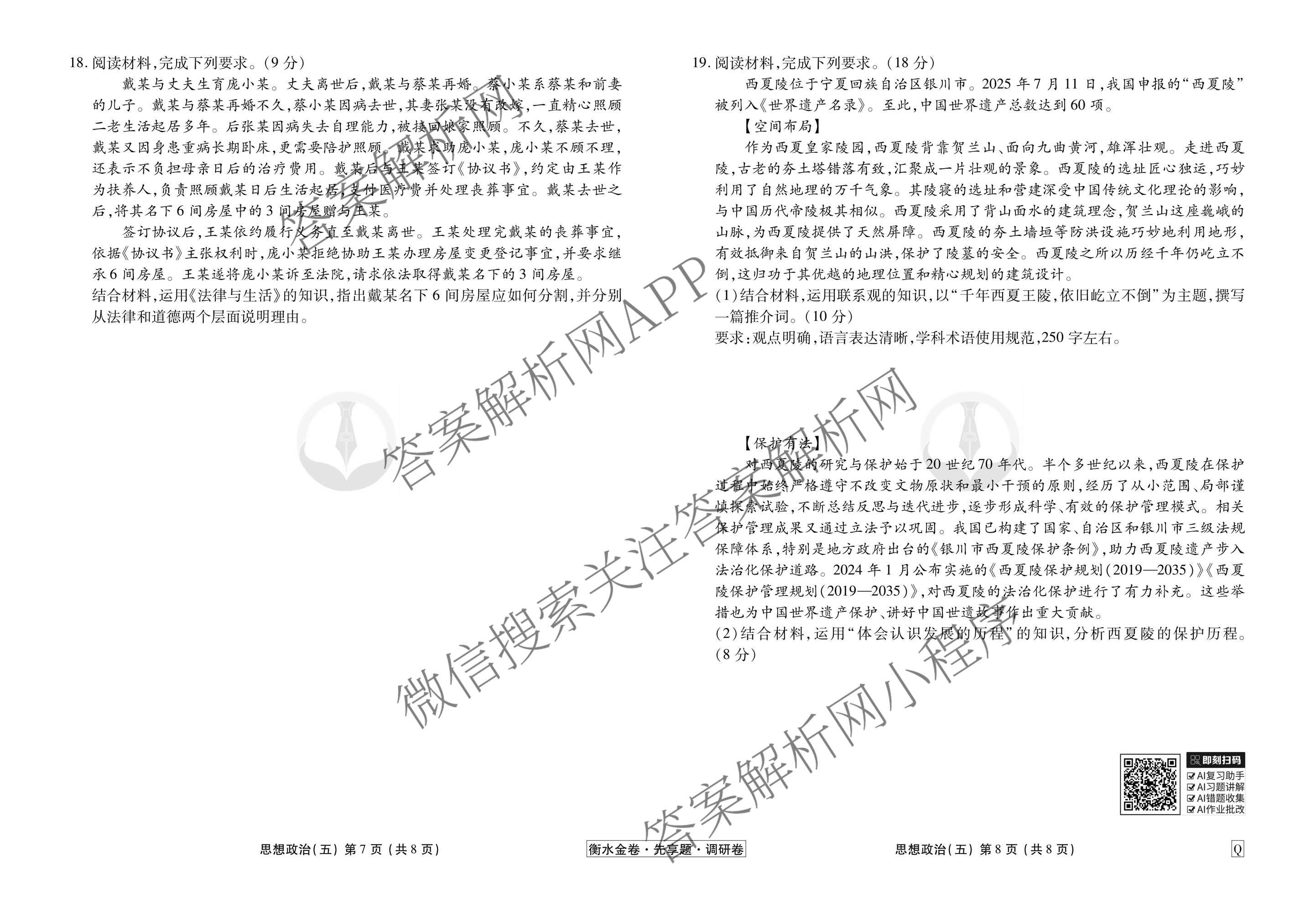 - [衡水金卷先享题]调研卷2026年普通高中学业水平选择性考试模拟试题(五)5政治(AH)答案
