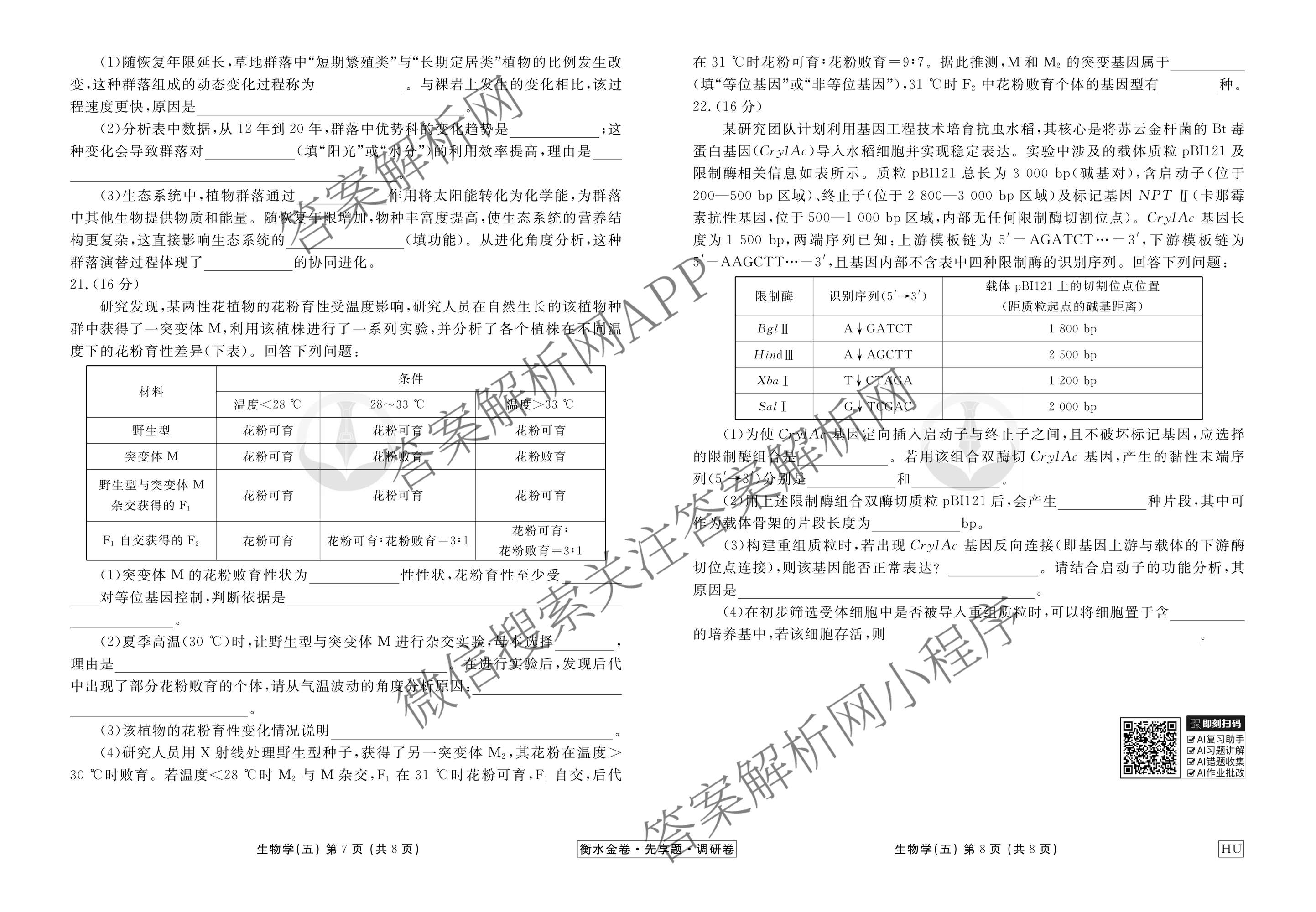 衡水金卷先享题·调研卷·2026年普通高中学业水平选择性考试模拟试题(五)5生物(HU)试题,目前衡水金卷先享题答案网已经汇总了衡水金卷先享题·调研卷·2026年普通高中学业水平选择性考试模拟试题(五)5生物(HU)试题的各科答案和试卷,获取更多衡水金卷先享题答案解析,请在关注本站。