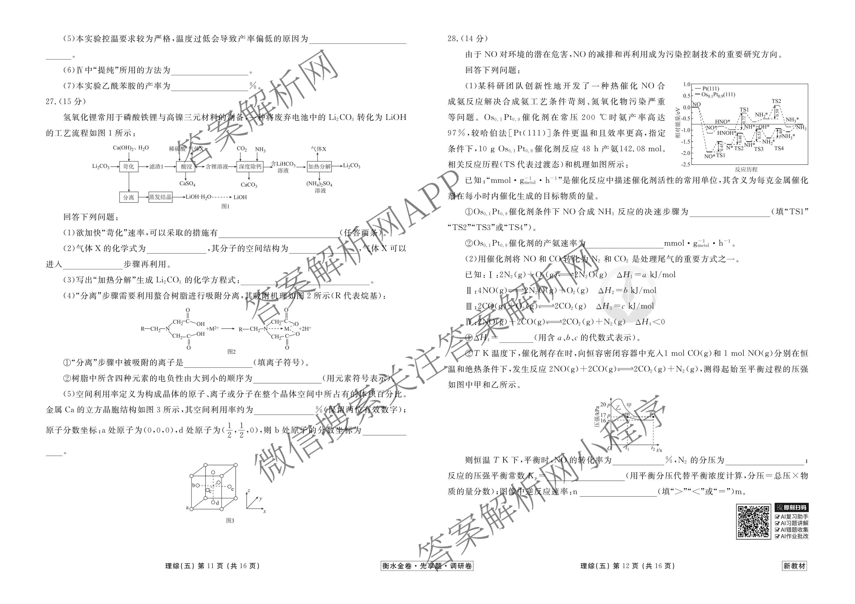 - [高三]衡水金卷先享题调研卷2026年普通高中学业水平选择性考试模拟试题(五)5化学(HJ)试题