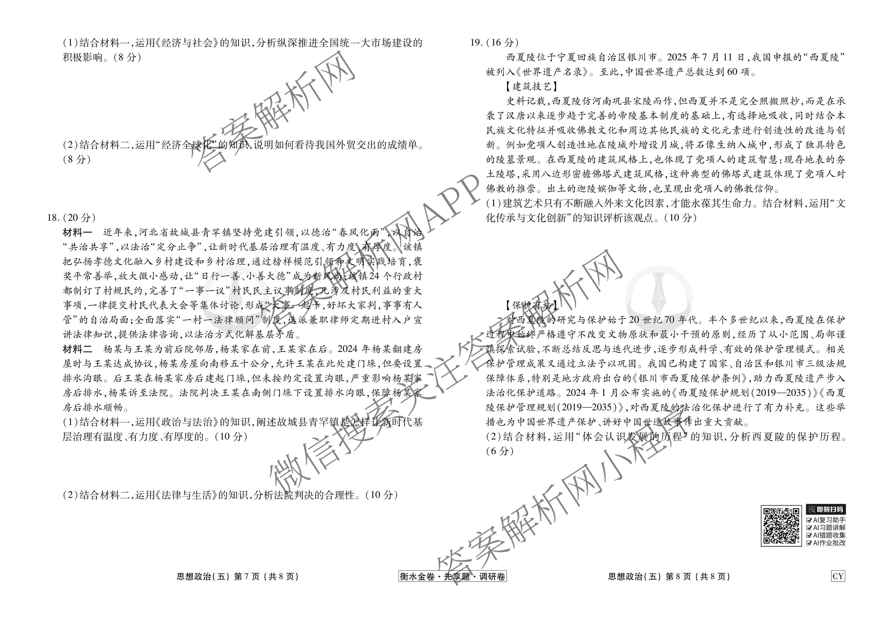 衡水金卷先享题·调研卷·2026年普通高中学业水平选择性考试模拟试题(五)5政治(CY)试题,目前衡水金卷先享题答案网已经汇总了衡水金卷先享题·调研卷·2026年普通高中学业水平选择性考试模拟试题(五)5政治(CY)试题的各科答案和试卷,获取更多衡水金卷先享题答案解析,请在关注本站。