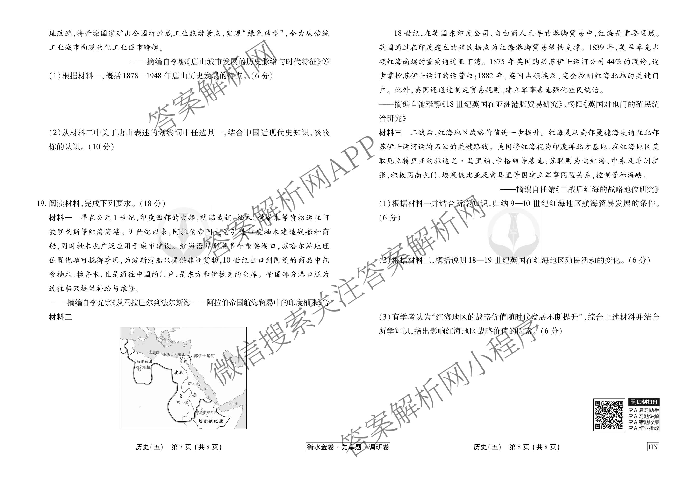 衡水金卷先享题·调研卷·2026年普通高中学业水平选择性考试模拟试题(五)5历史(HN)试题,目前衡水金卷先享题答案网已经汇总了衡水金卷先享题·调研卷·2026年普通高中学业水平选择性考试模拟试题(五)5历史(HN)试题的各科答案和试卷,获取更多衡水金卷先享题答案解析,请在关注本站。