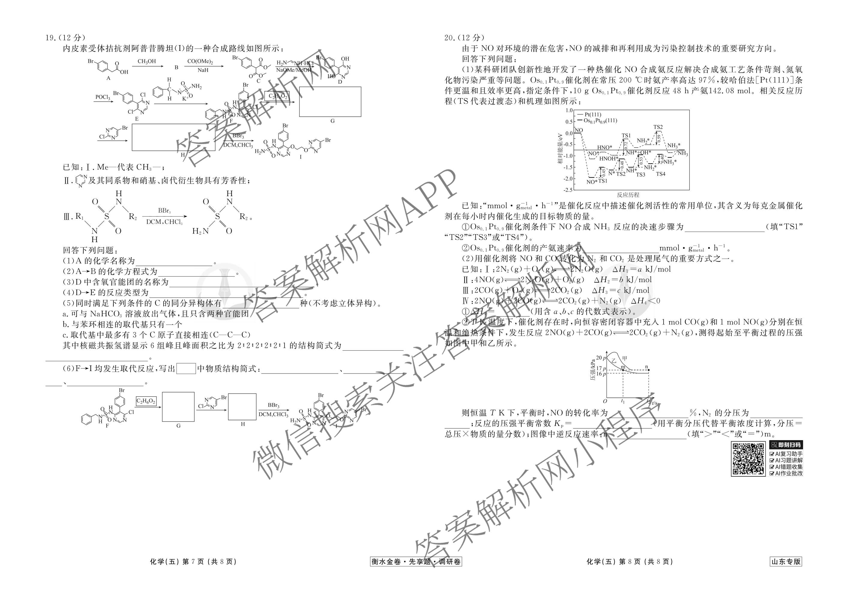 - (衡水金卷先享题)调研卷2026年普通高中学业水平等级考试模拟试题(五)5化学(山东专版)答案
