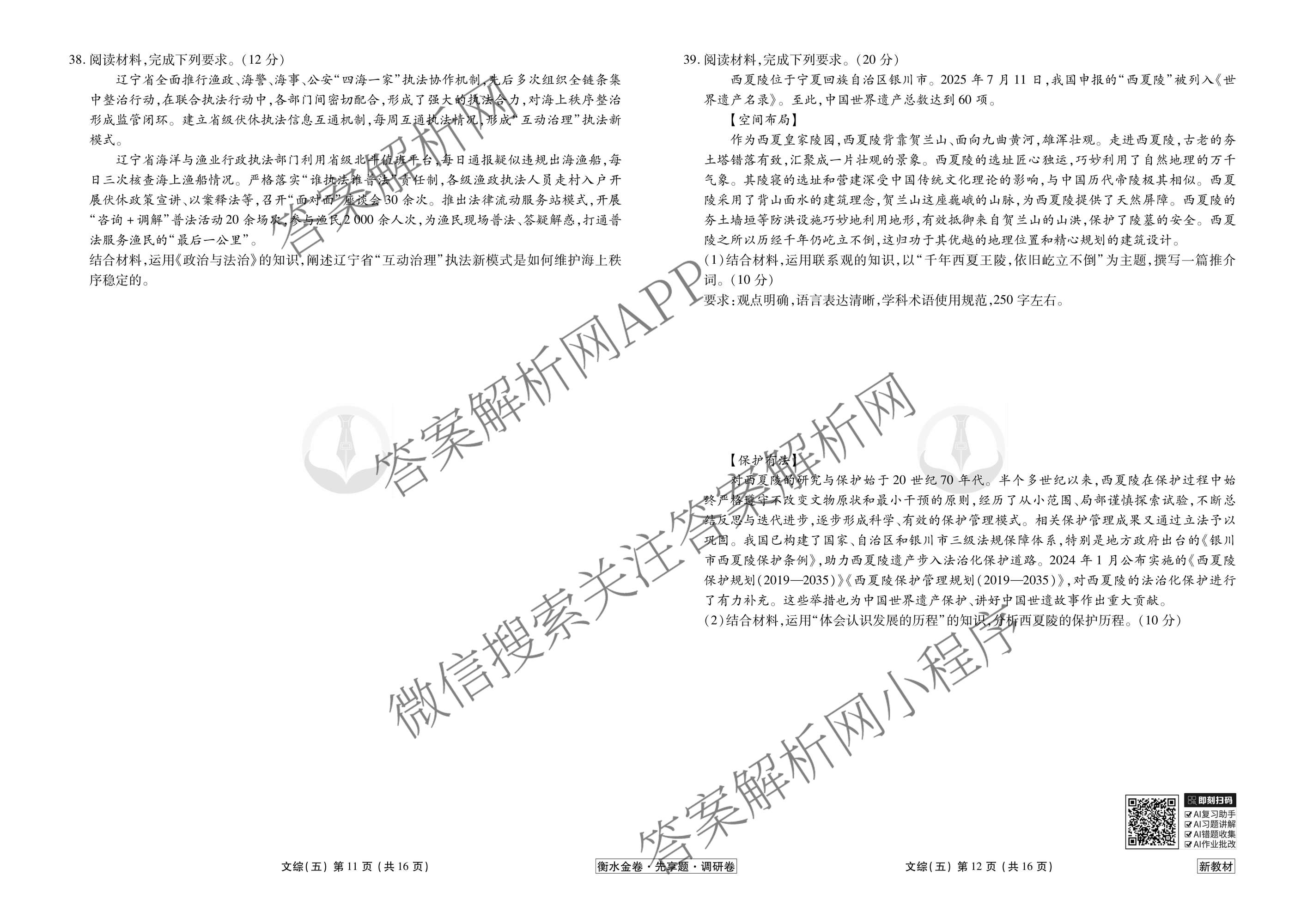 衡水金卷先享题·调研卷·2026年普通高等学校招生全国统一考试模拟(五)5文综(新教材)试题,目前衡水金卷先享题答案网已经汇总了衡水金卷先享题·调研卷·2026年普通高等学校招生全国统一考试模拟(五)5文综(新教材)试题的各科答案和试卷,获取更多衡水金卷先享题答案解析,请在关注本站。