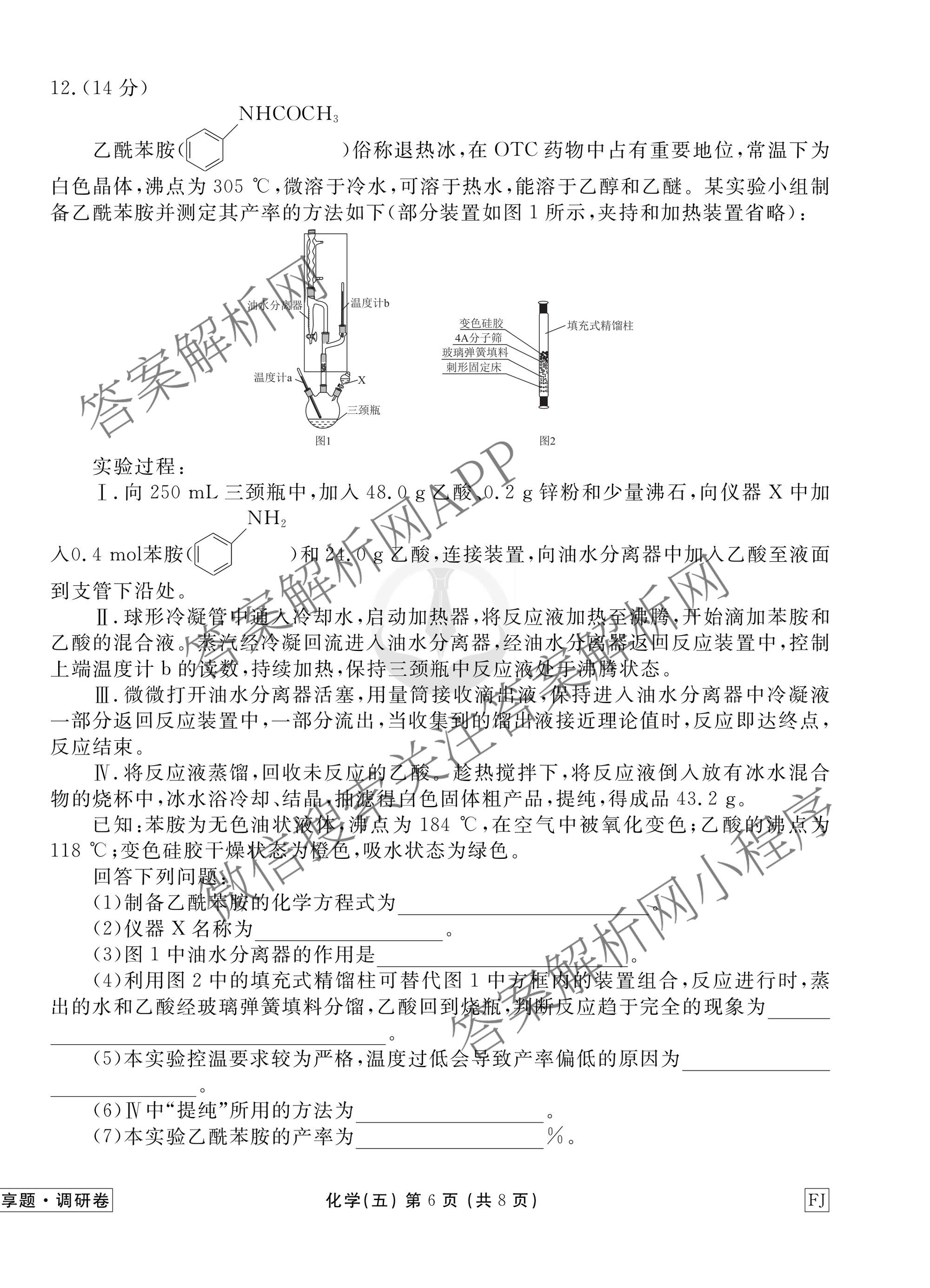 - [高三](衡水金卷先享题)·调研卷·2026年普通高中学业水平选择性考试模拟试题(五)5化学(AH)答案