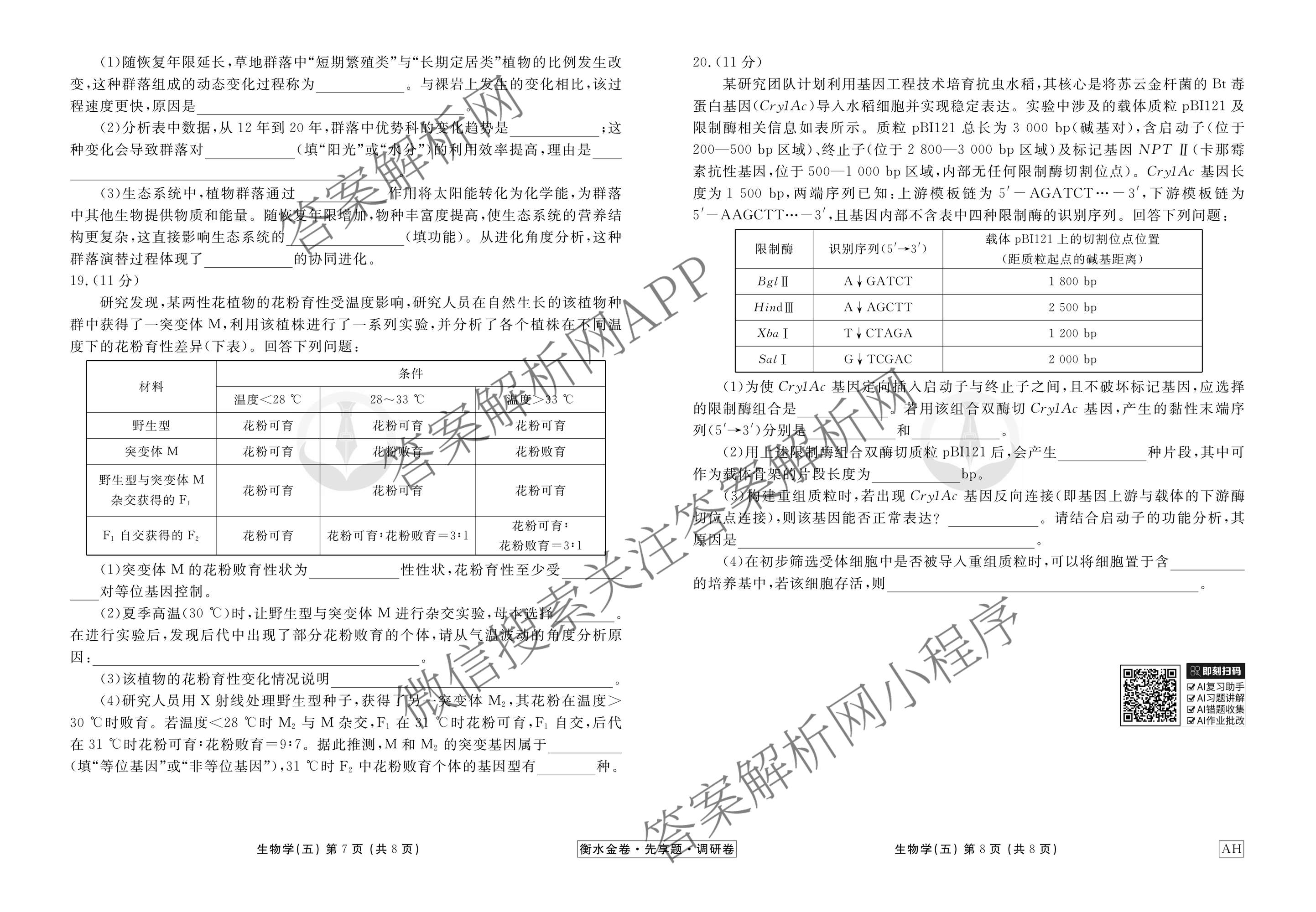 衡水金卷先享题·调研卷·2026年普通高中学业水平选择性考试模拟试题(五)5生物(AH)试题,目前衡水金卷先享题答案网已经汇总了衡水金卷先享题·调研卷·2026年普通高中学业水平选择性考试模拟试题(五)5生物(AH)试题的各科答案和试卷,获取更多衡水金卷先享题答案解析,请在关注本站。