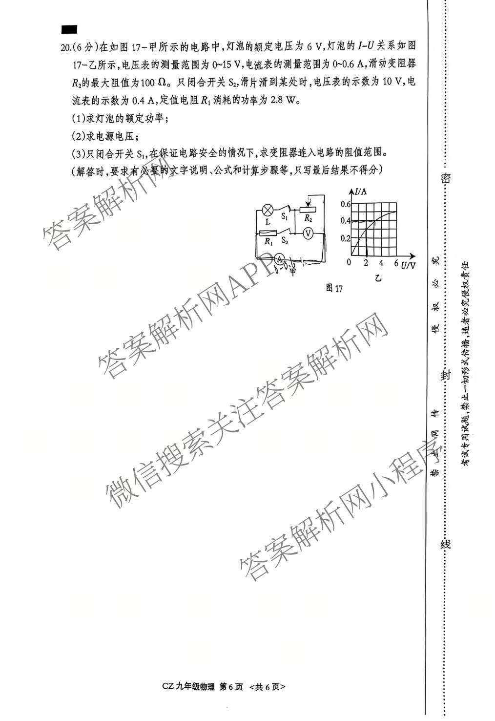 - 2025~2026[九年级]思博·河北省学年第一学期期末教学质量检测物理(CZ)答案