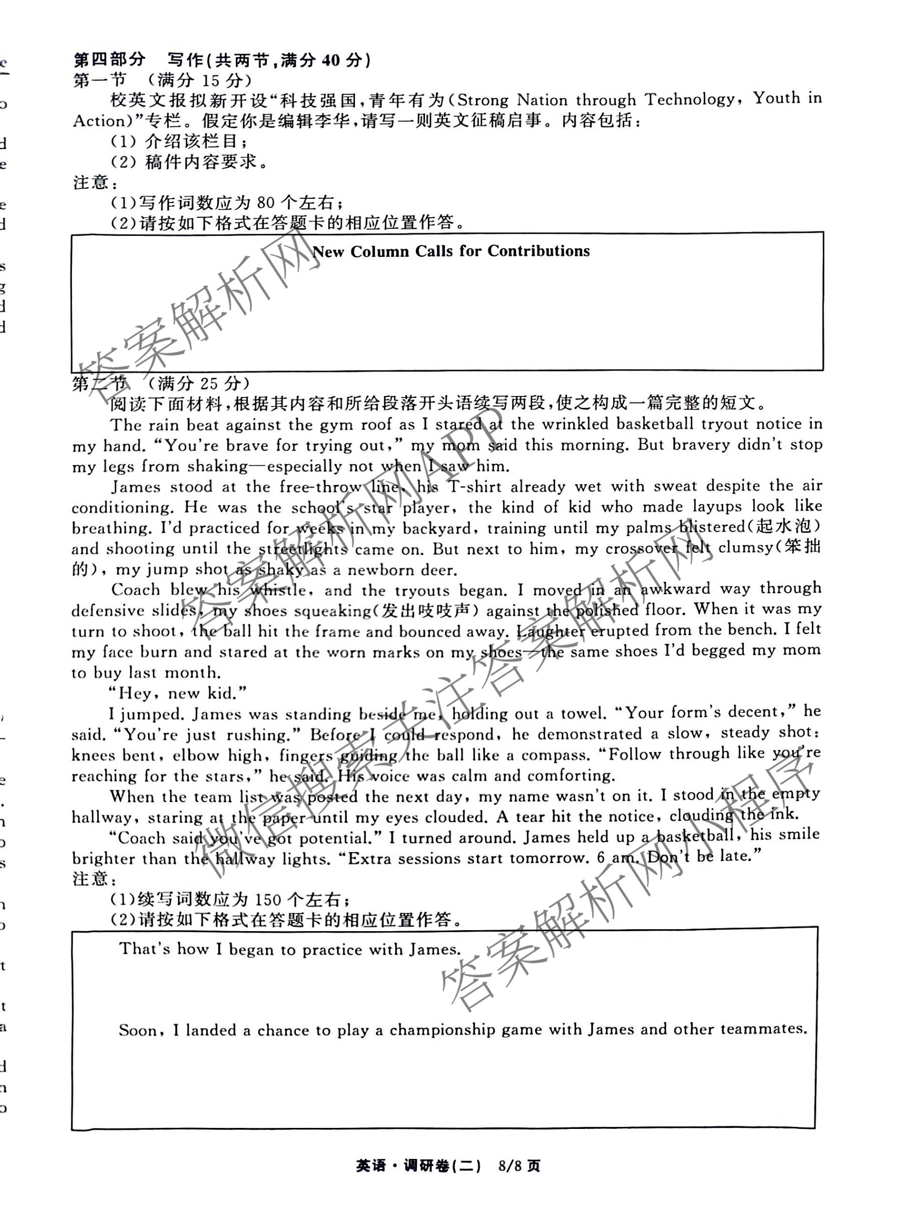 - 天舟高考[衡中同卷]2026年普通高等学校招生全国统一考试模拟调研卷(二)2英语(B)答案