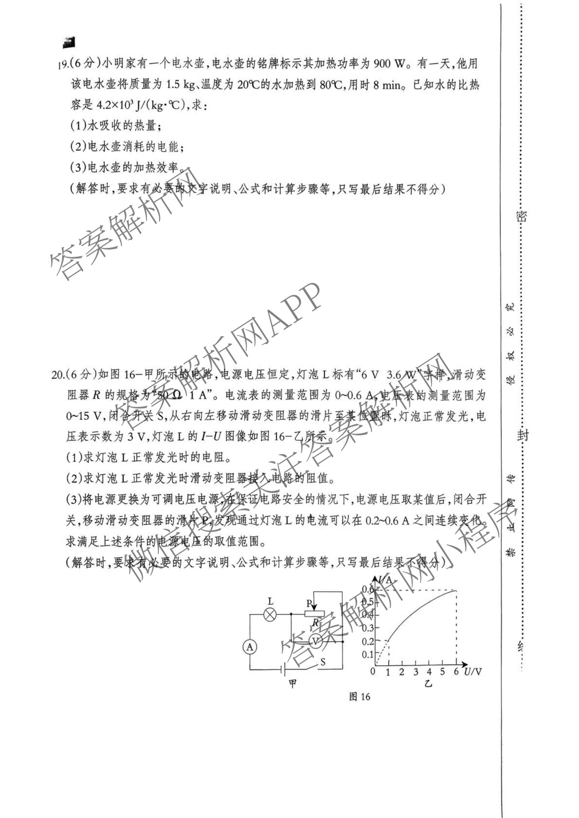 - 2025~2026思博河北省学年[九年级]第一学期期末教学质量检测(C卷)物理(GA)答案
