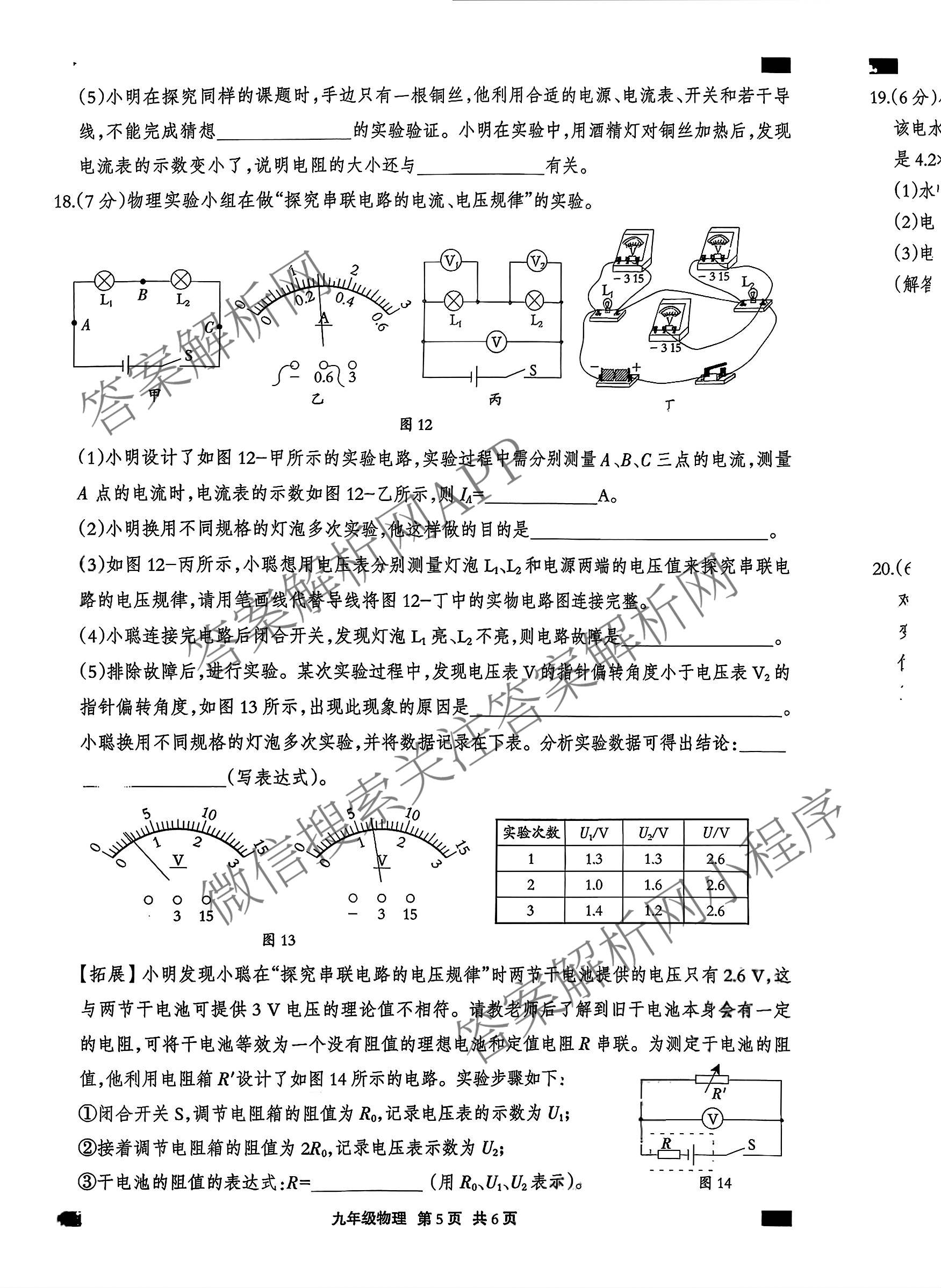 - 2025~2026思博河北省学年[九年级]第一学期期末教学质量检测(C卷)物理(GA)答案