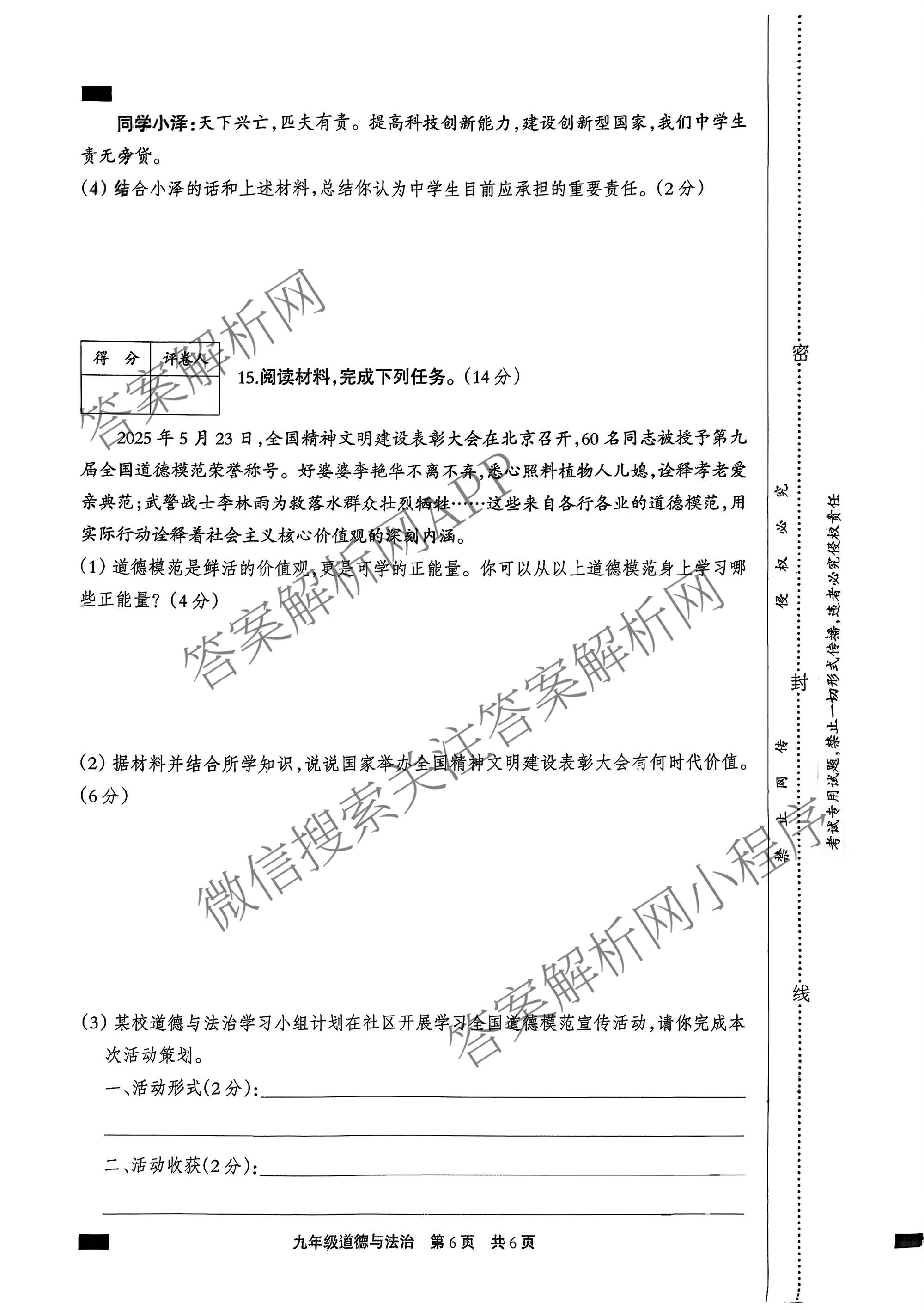 - 2025~2026思博河北省学年[九年级]第一学期期末教学质量检测(C卷)道德与法治试题