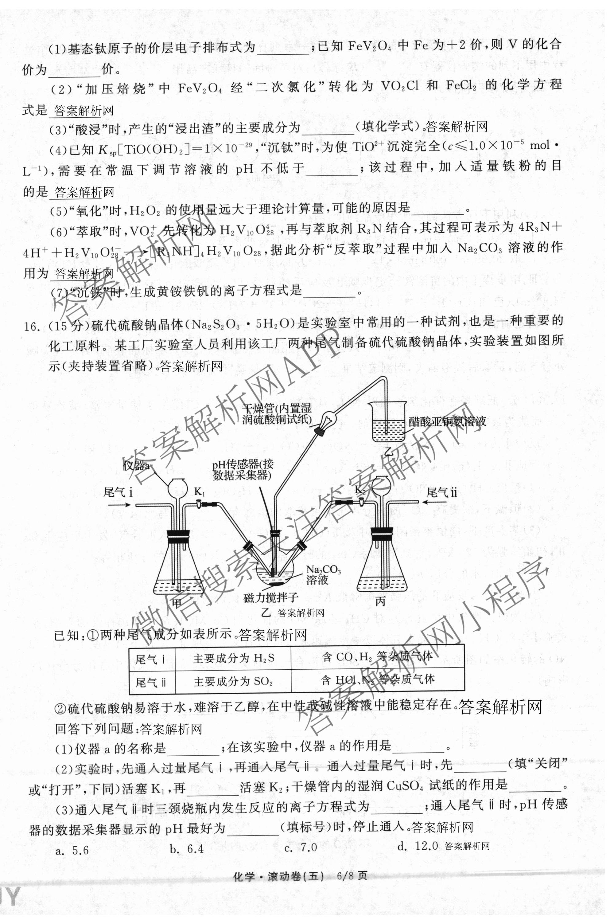 - [高三][衡中同卷]2025-2026学年度复习滚动卷(五)5化学(LE)答案