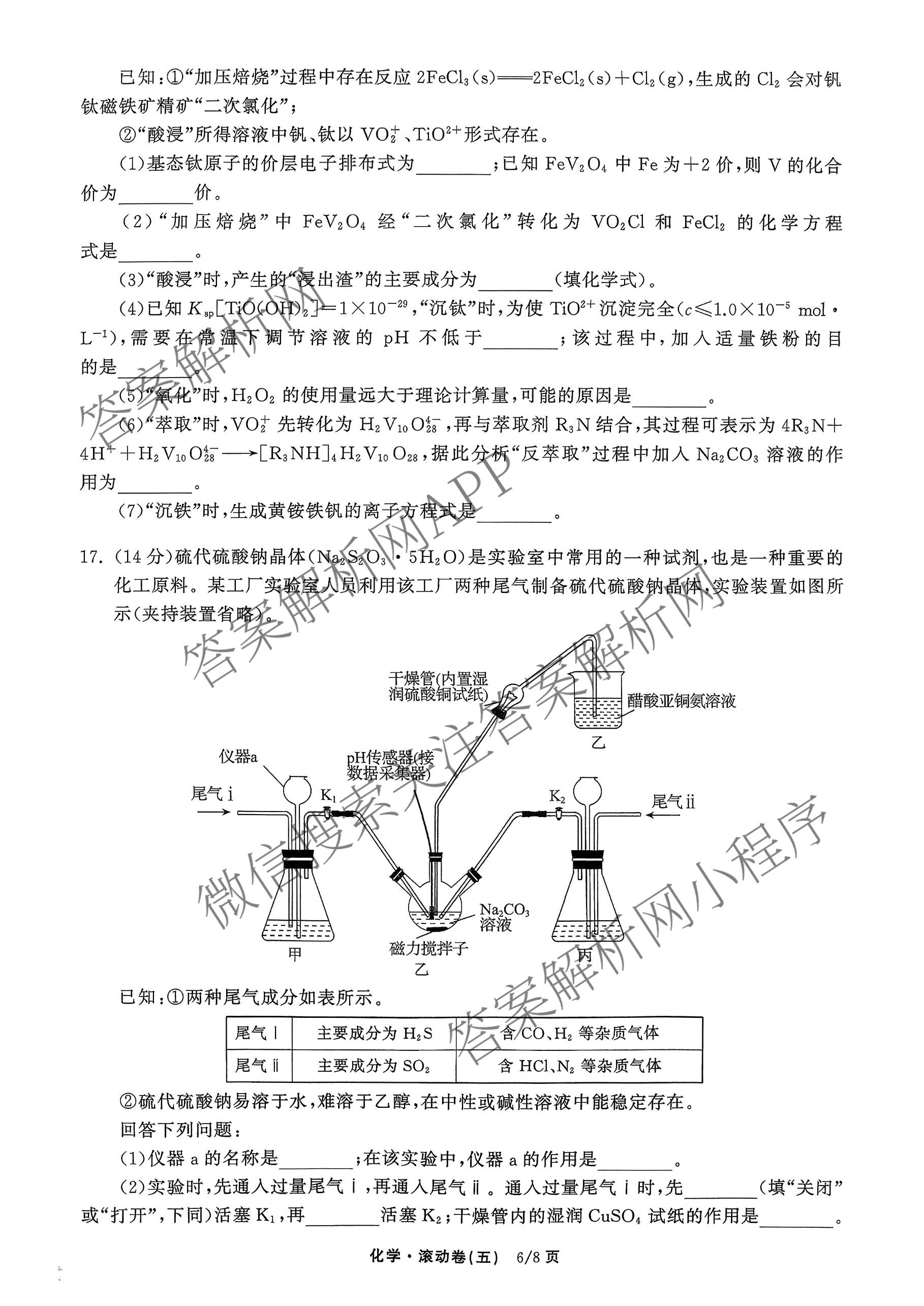 - [高三][衡中同卷]2025-2026学年度复习滚动卷(五)5化学(LE)答案