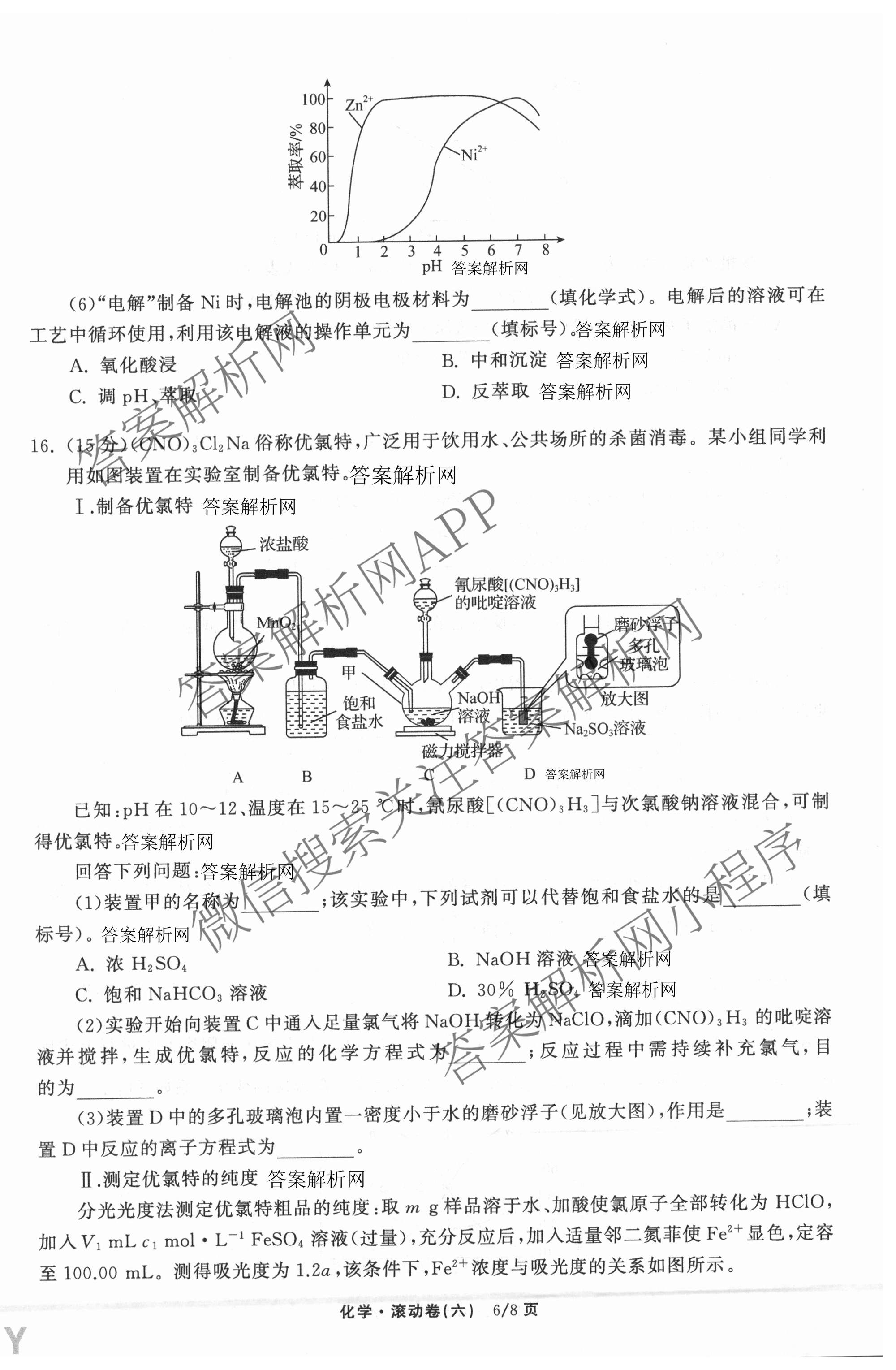 - 2025~2026(高三)衡中同卷·学年度复习滚动卷(六)6化学试题