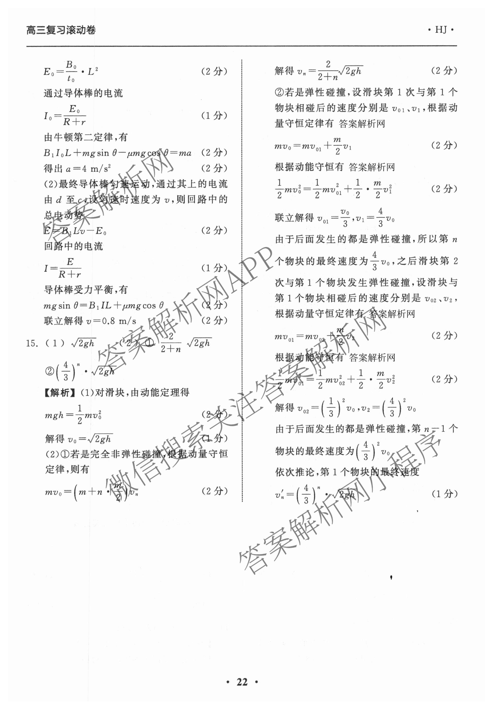 - 2025-2026(衡中同卷)·学年度(高三)复习滚动卷(六)6物理(HJ)答案