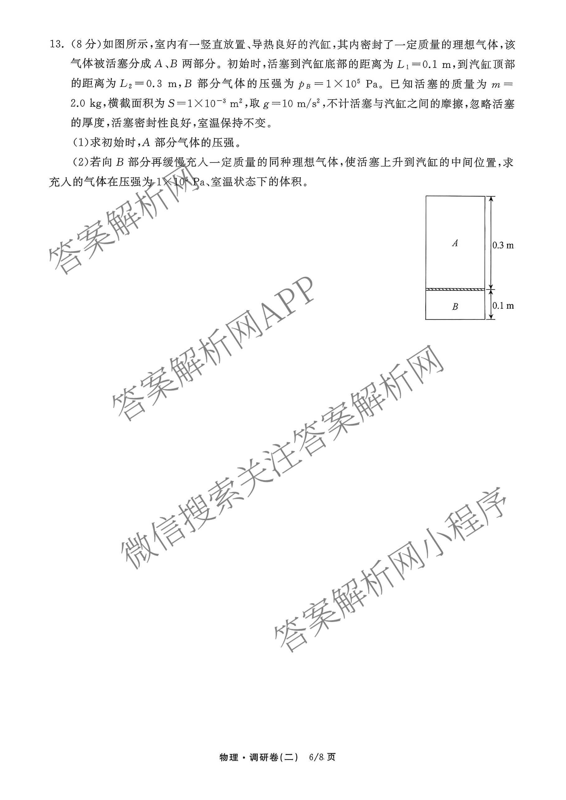- 天舟高考(衡中同卷)2026年普通高中学业水平选择性考试模拟调研卷(二)2物理(安徽版)答案
