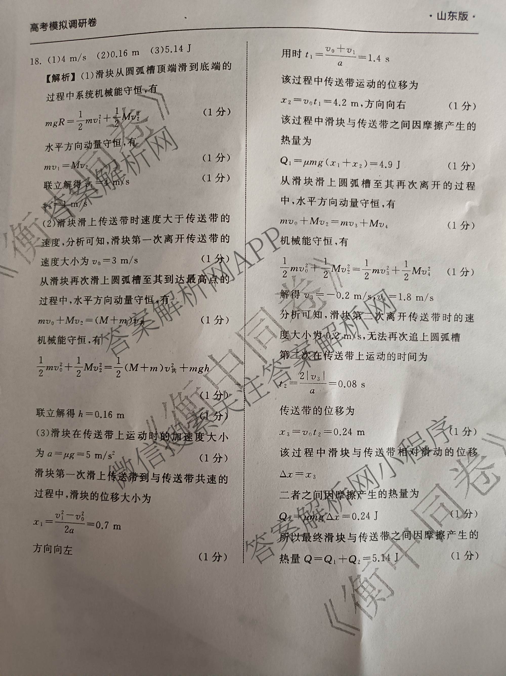 天舟高考[衡中同卷]2026年普通高中学业水平选择性考试模拟调研卷(二)2物理(山东版)答案